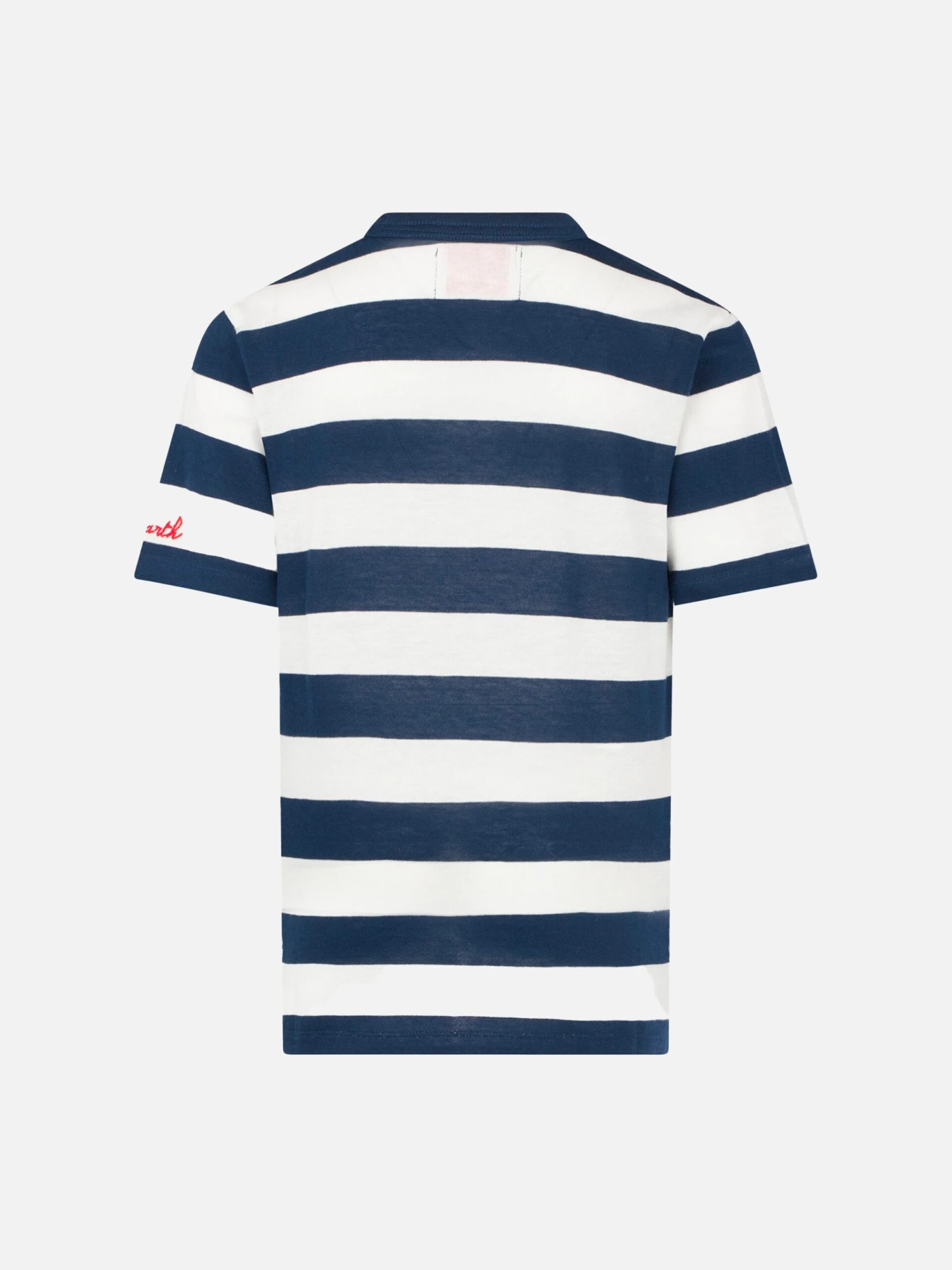 Boy Blue Striped T-shirt With St. Barth Embroidery