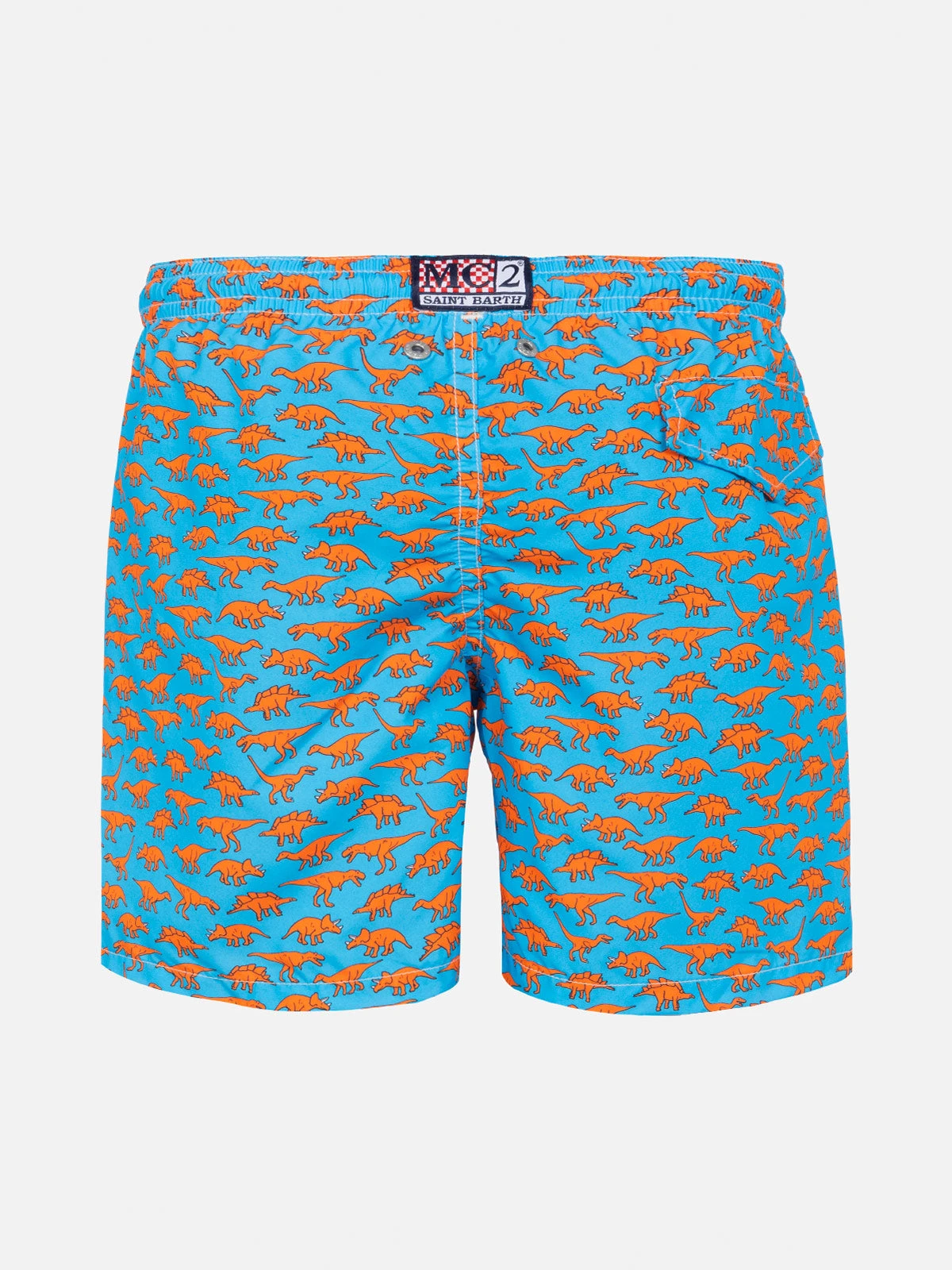 Boy Light Fabric Swim Shorts With Dinosaurs Print