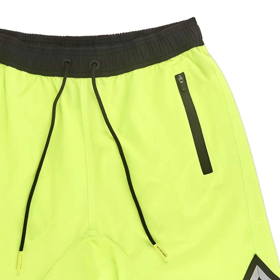 MC2 Saint Barth man’s long swim short, yellow fluo, surfer style, quick drying, long-lenght, light net lining, elasticated waistband, drawstring fastening, fluo details, front pocket with zip and back pocket with velcro.