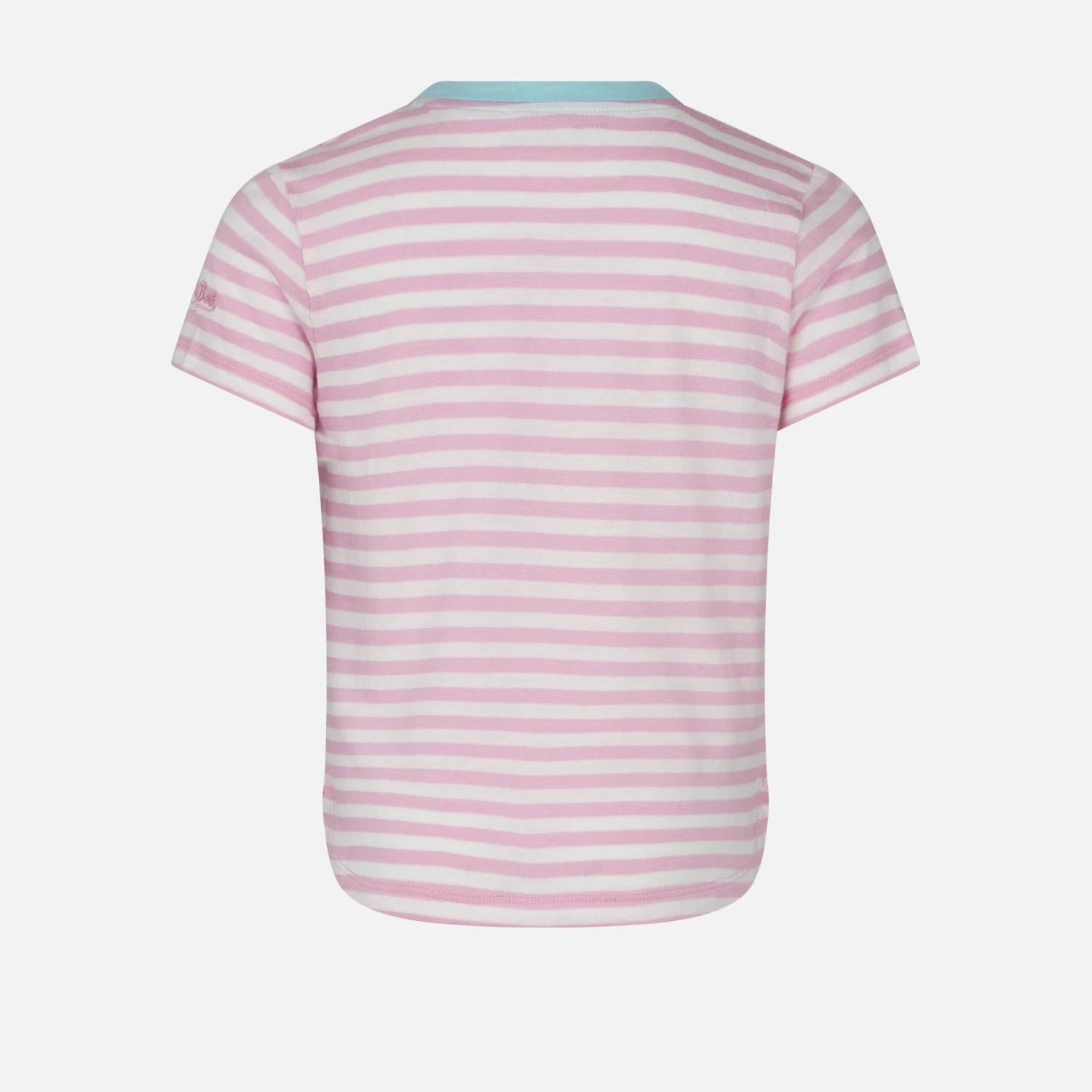 Pink and white striped with embroided writing