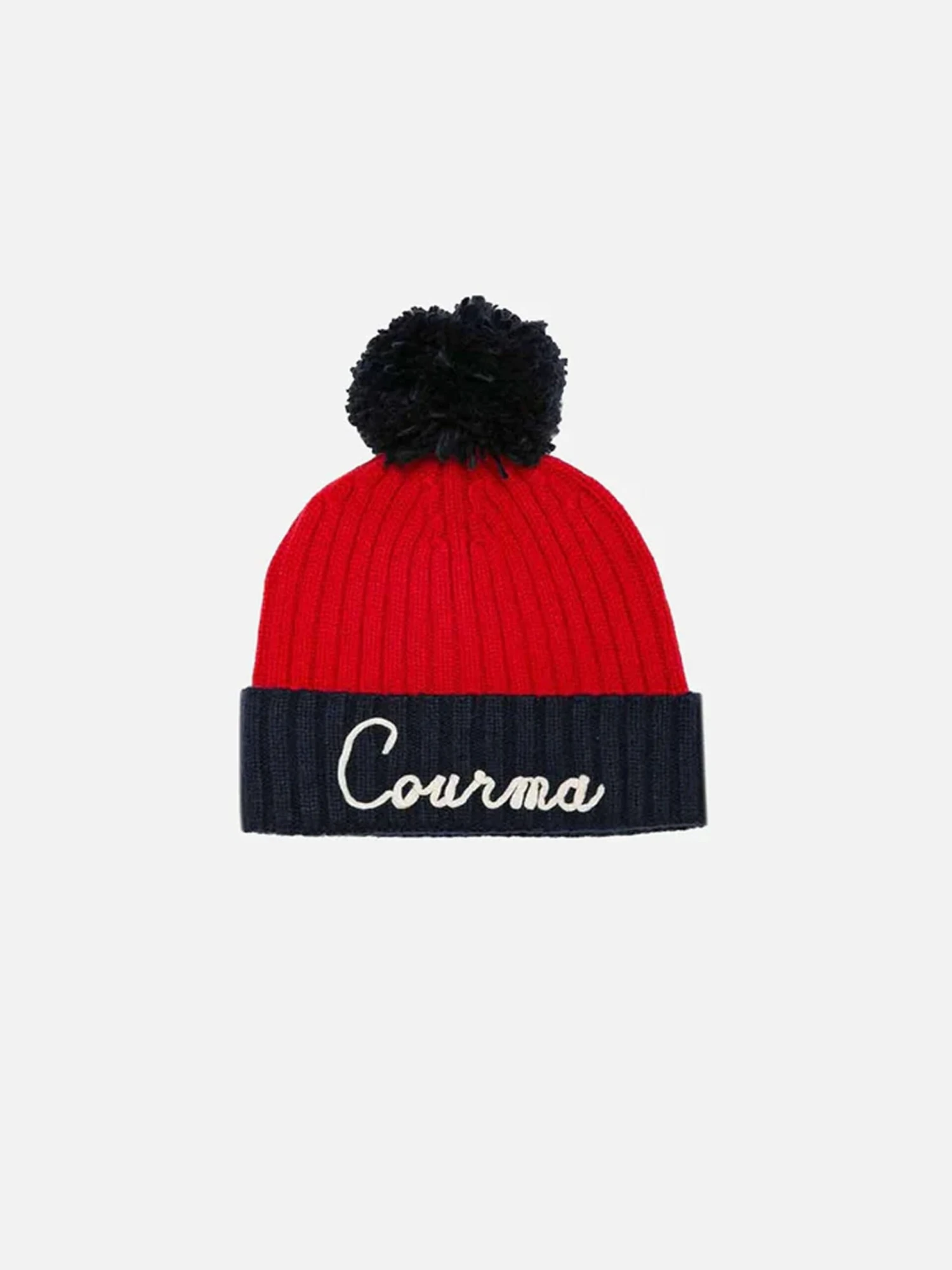 Blue and red blended cashmere with pompon