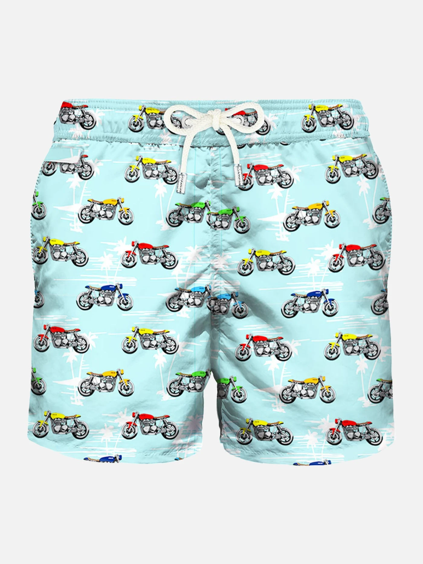 Ultraweight Swim Trunk,MC2 BIKER print, Quick Drying, mid-lenght, regular fit, inside ergonomic brief, drawcord closure, backside pocket with magnetic closure. The swim trunk can be folded into the back pocket turning into a perfect travel pouch.