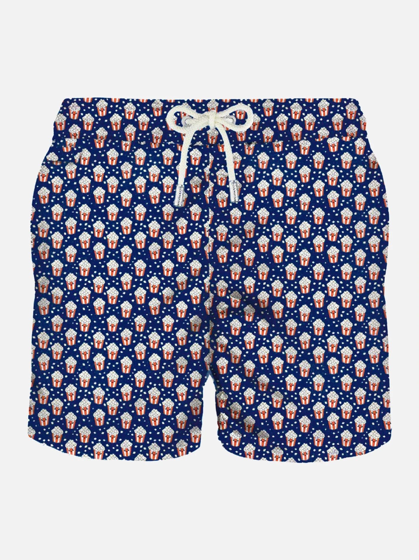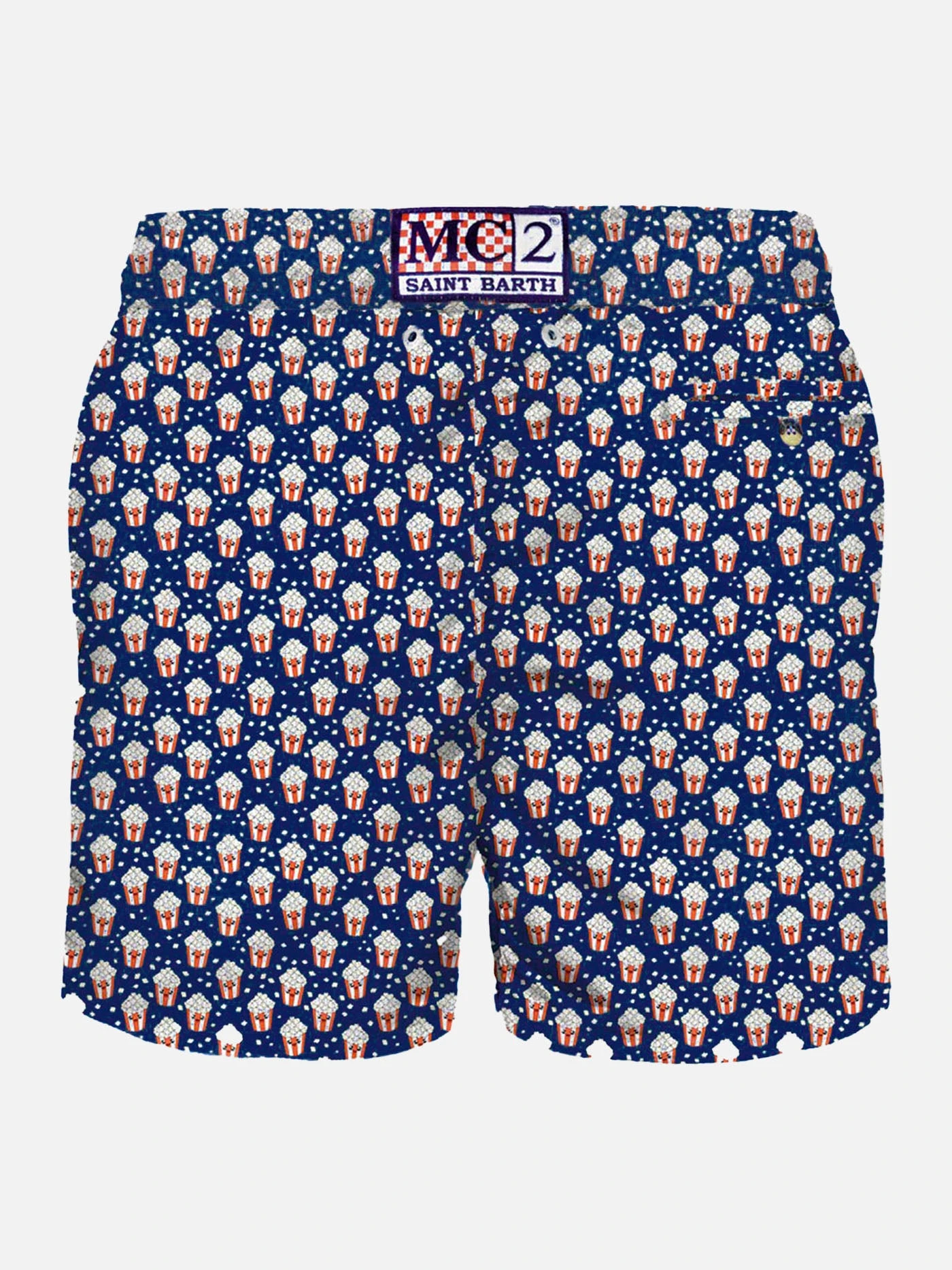 Man Light Fabric Swim Shorts With Pop Corn Print