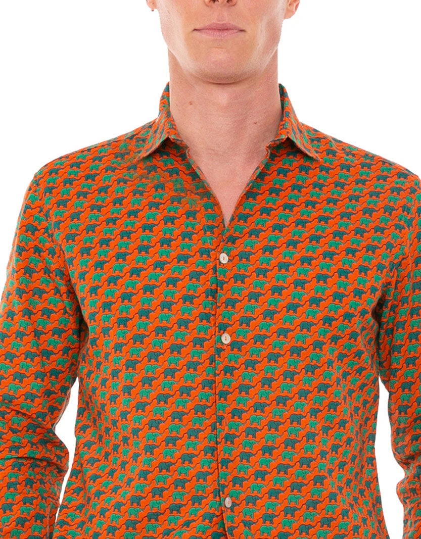Man Muslin Cotton Sikelia Shirt With Elephant Print