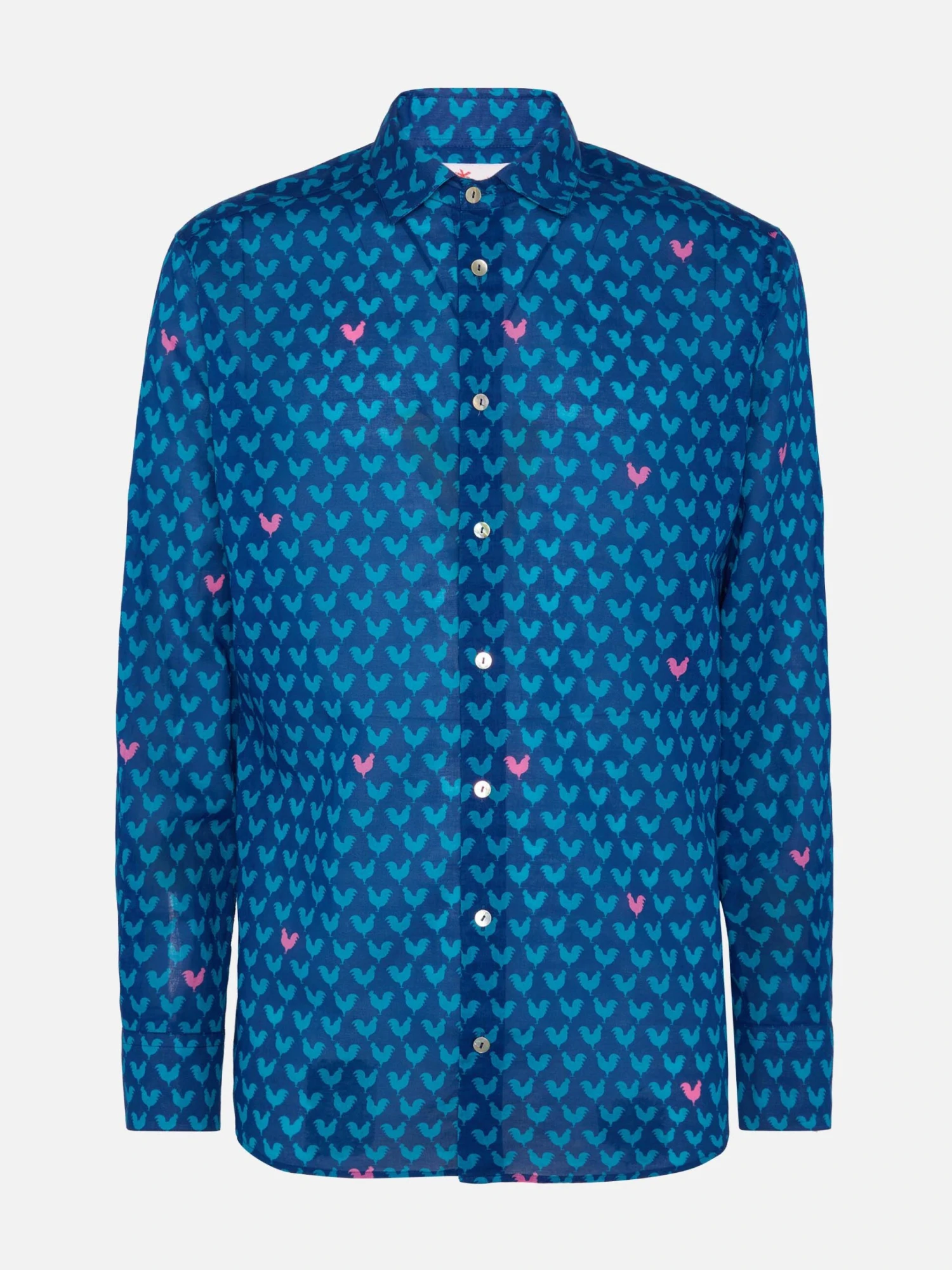 Man Muslin Cotton Sikelia Shirt With Rooster Print