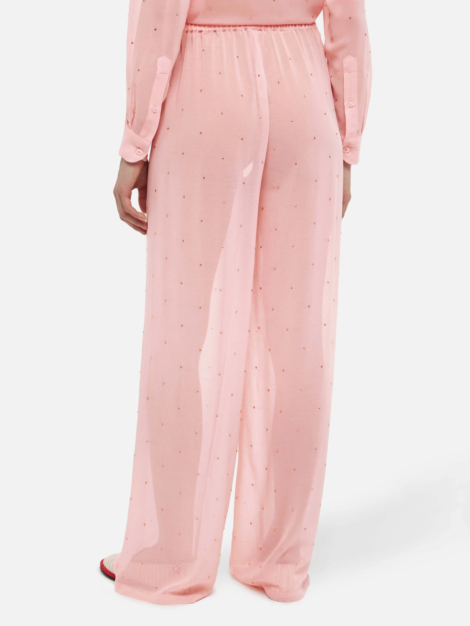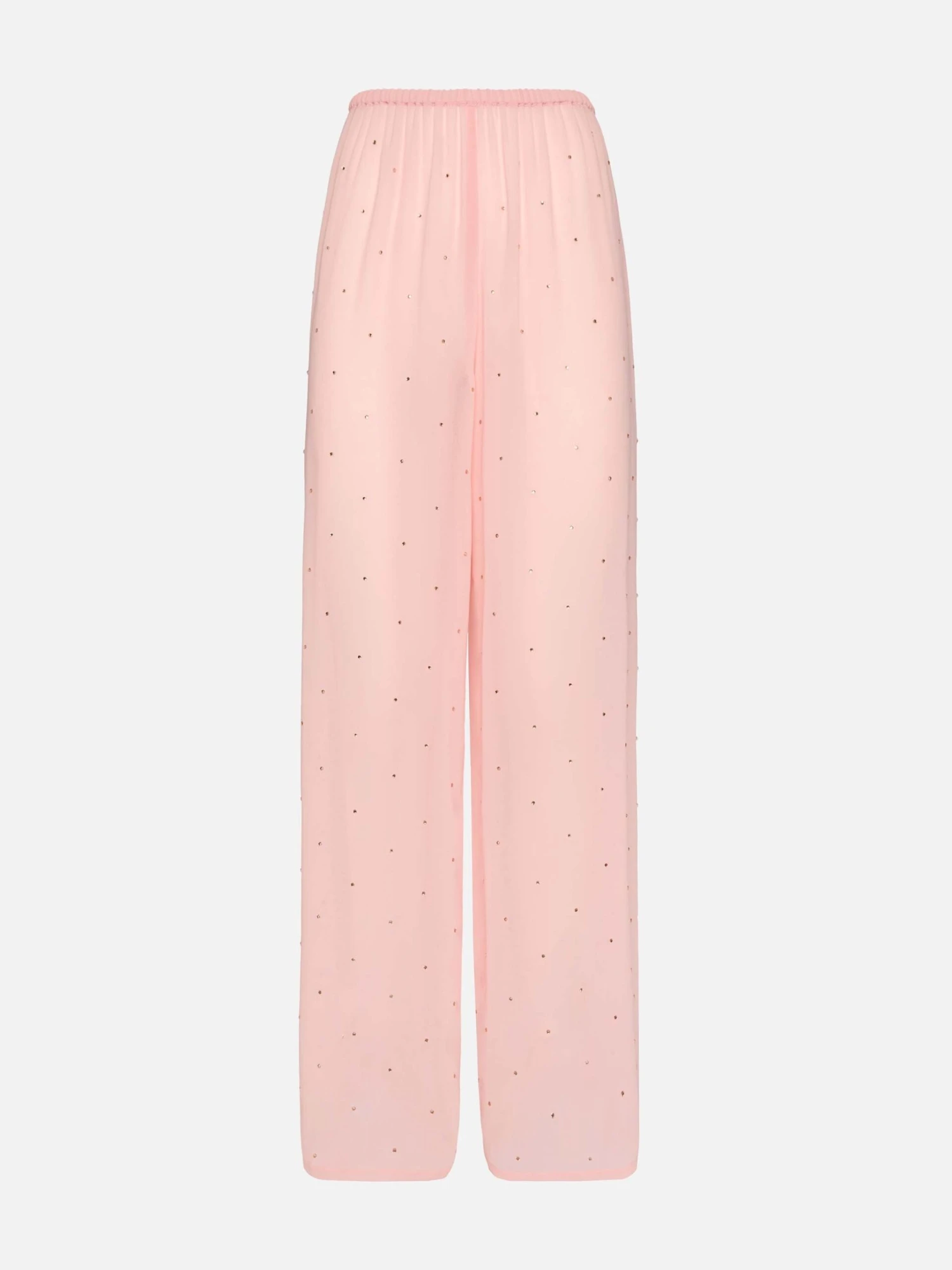 MC2 Saint Barth Amalia Pink Wide-leg Georgette Trousers With Rhinestone Embellishment