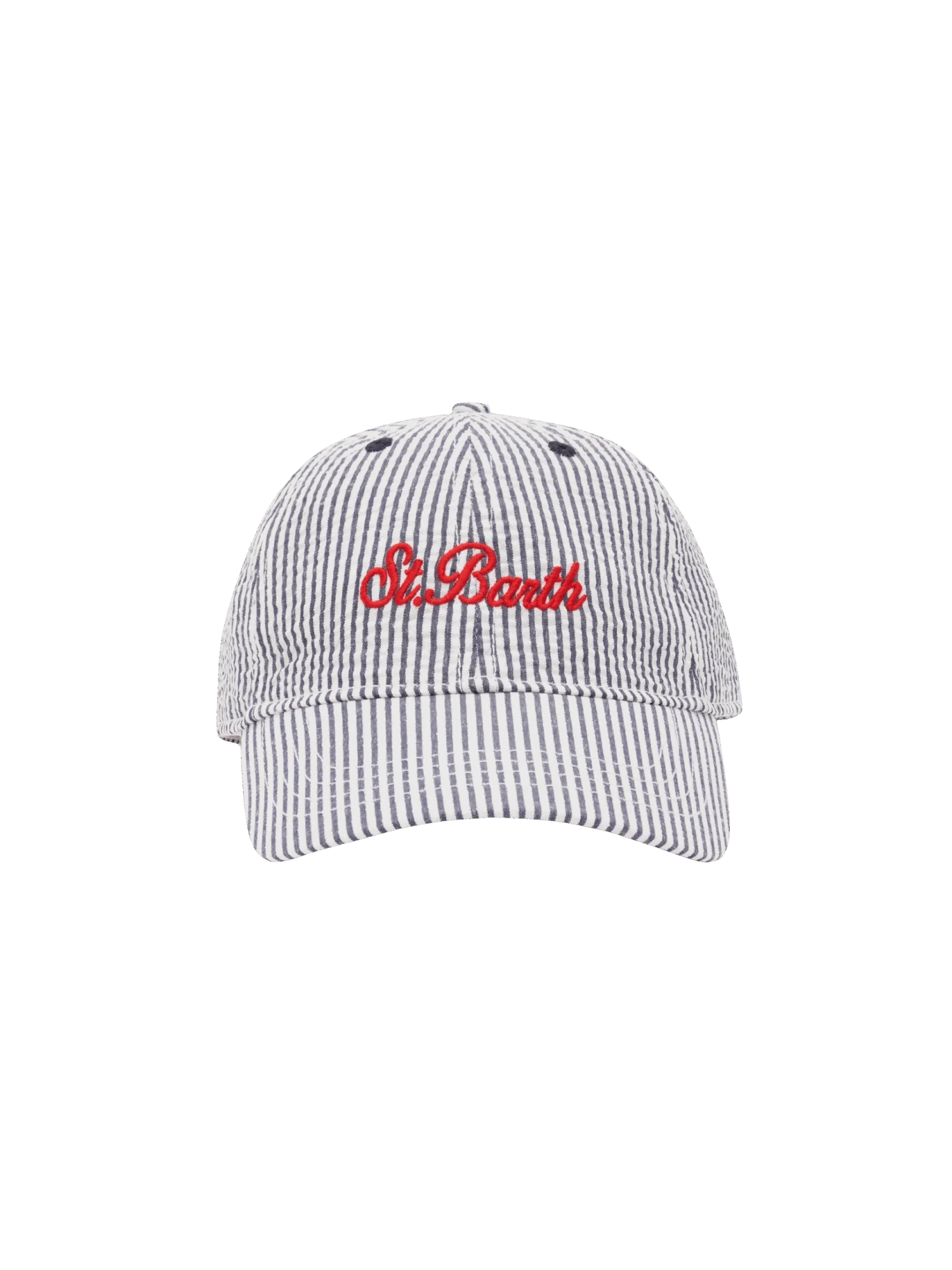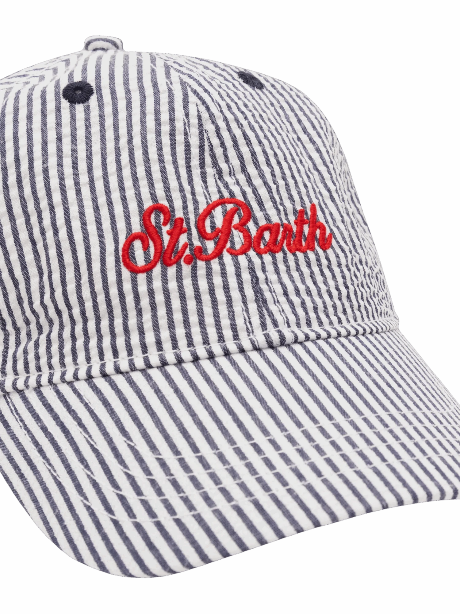 MC2 Saint Barth Baseball Navy Blue Striped Seersucker Cap