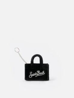MC2 Saint Barth Black Velvet Fabric Key Holder With Logo Embroidery