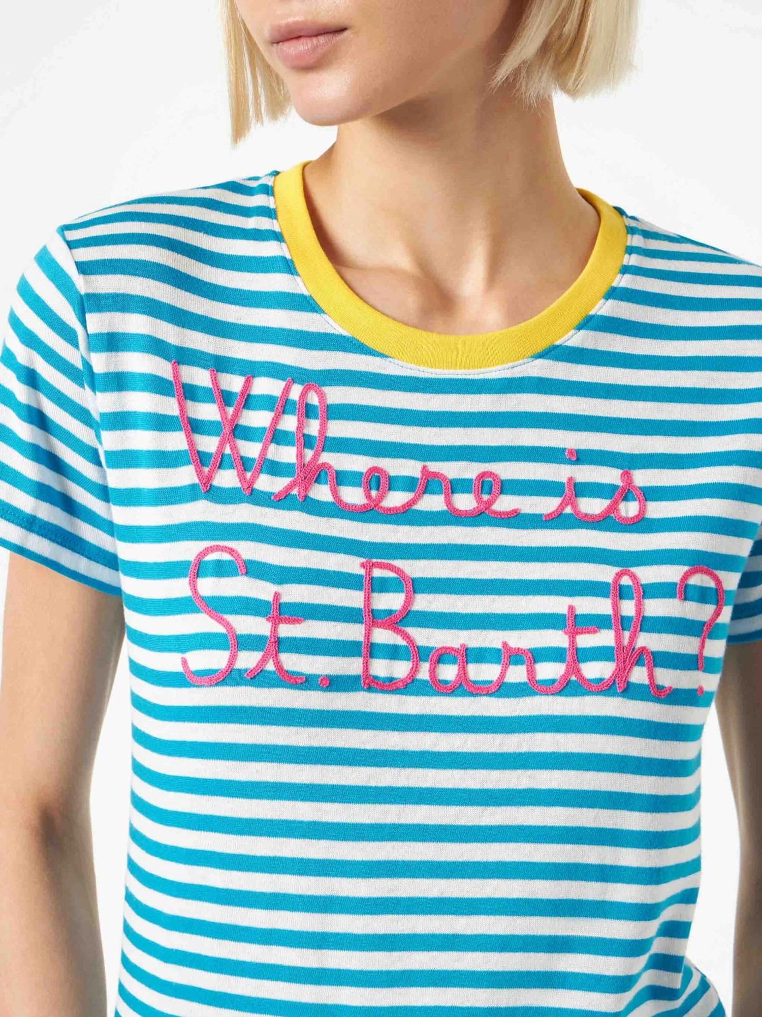 MC2 Saint Barth Bluette Cotton T-shirt With Where Is St. Barth? Embroidery