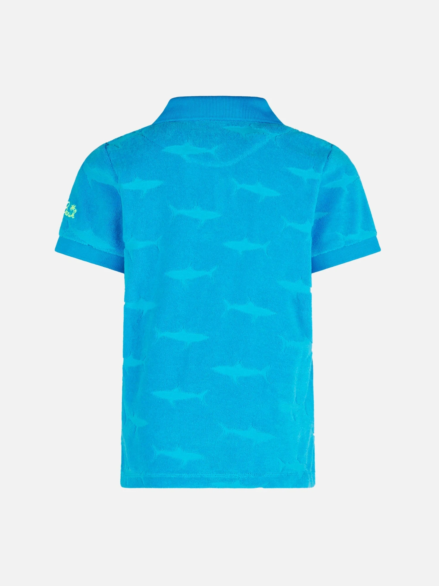 MC2 Saint Barth Boy Bluette Polo With Terry Embossed Sharks