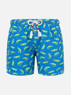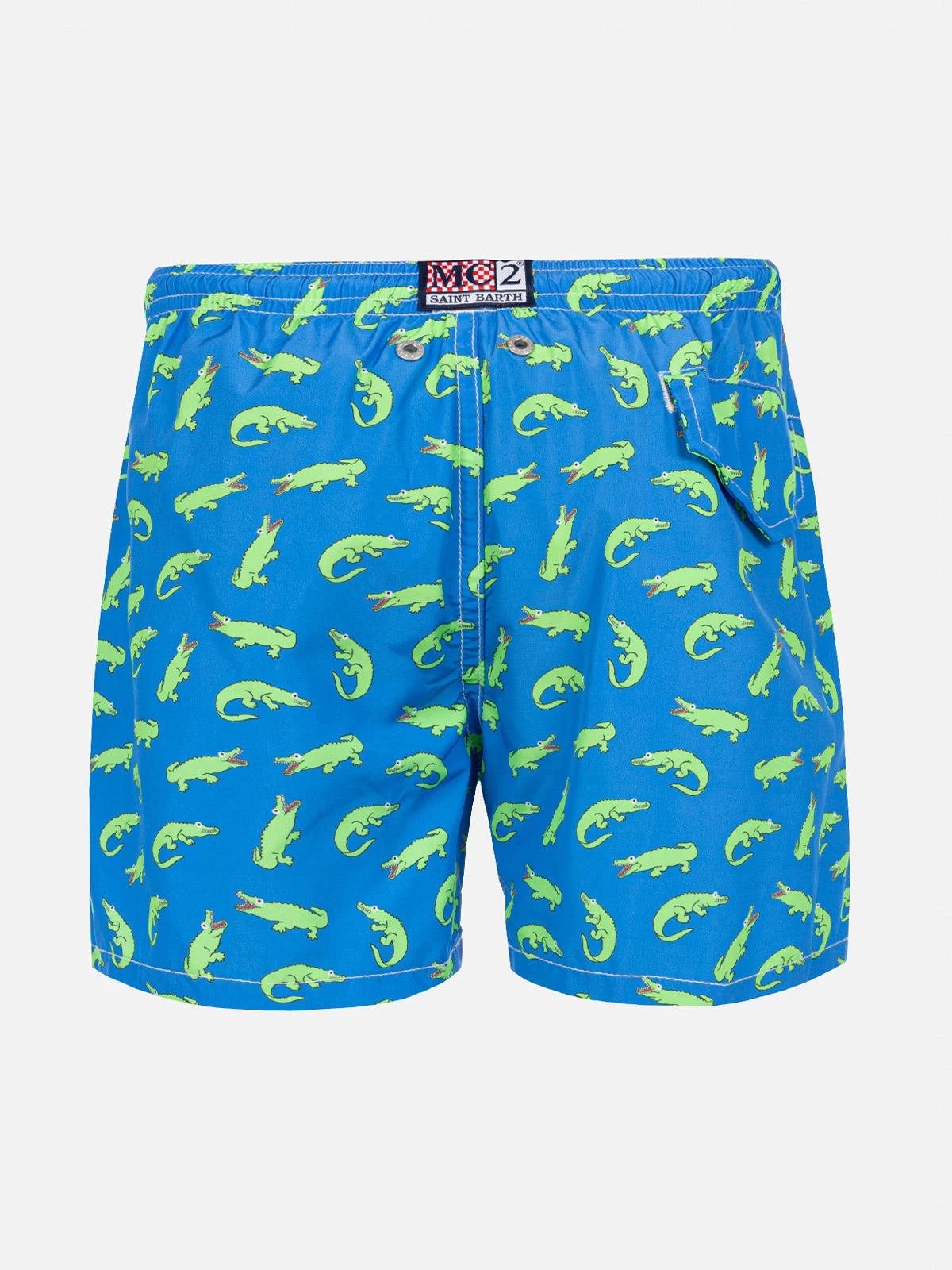 MC2 Saint Barth Boy Bluette Swim Shorts With Green Alligator Print