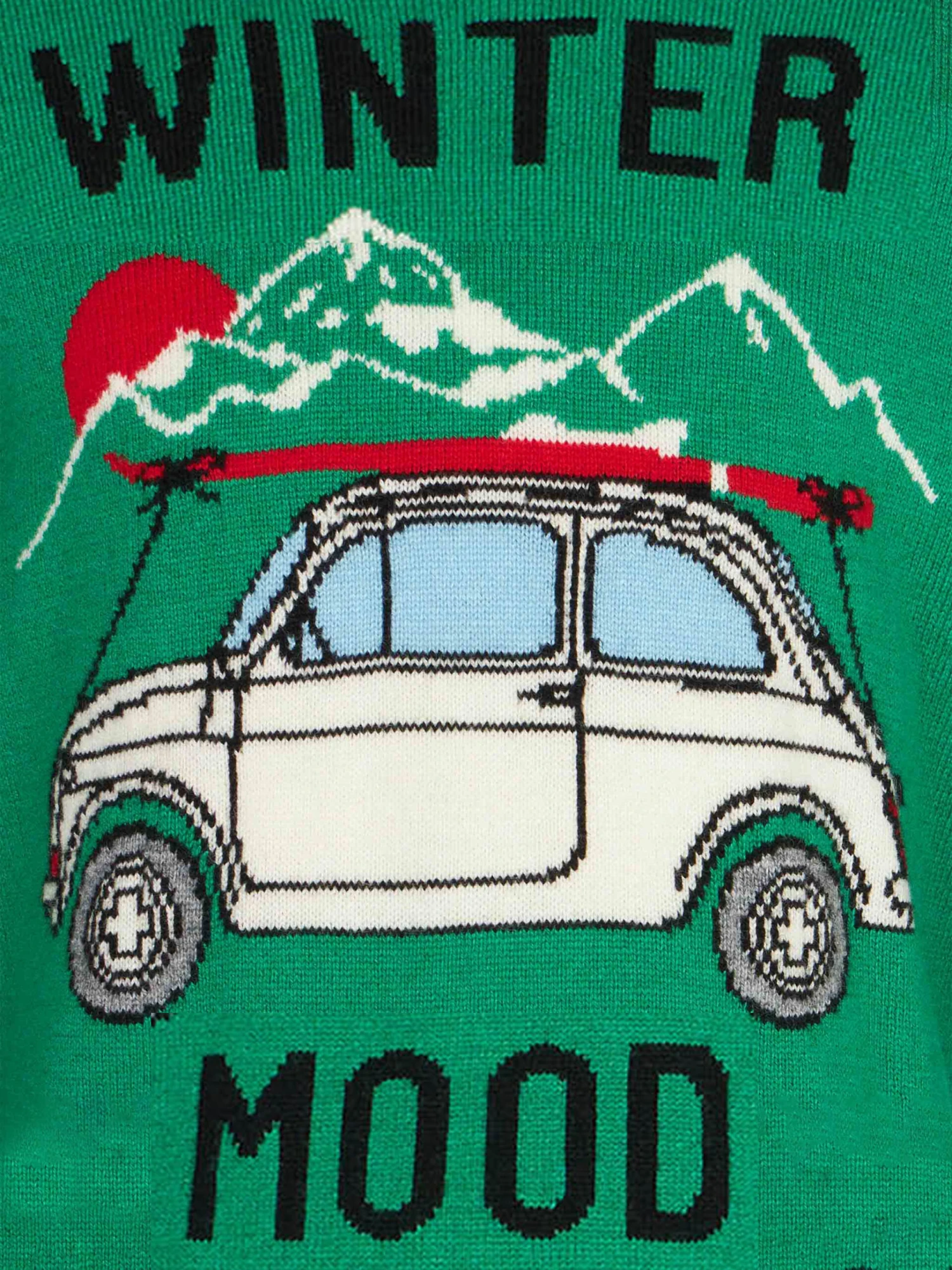 Green solid color with car print and “Winter mood” lettering