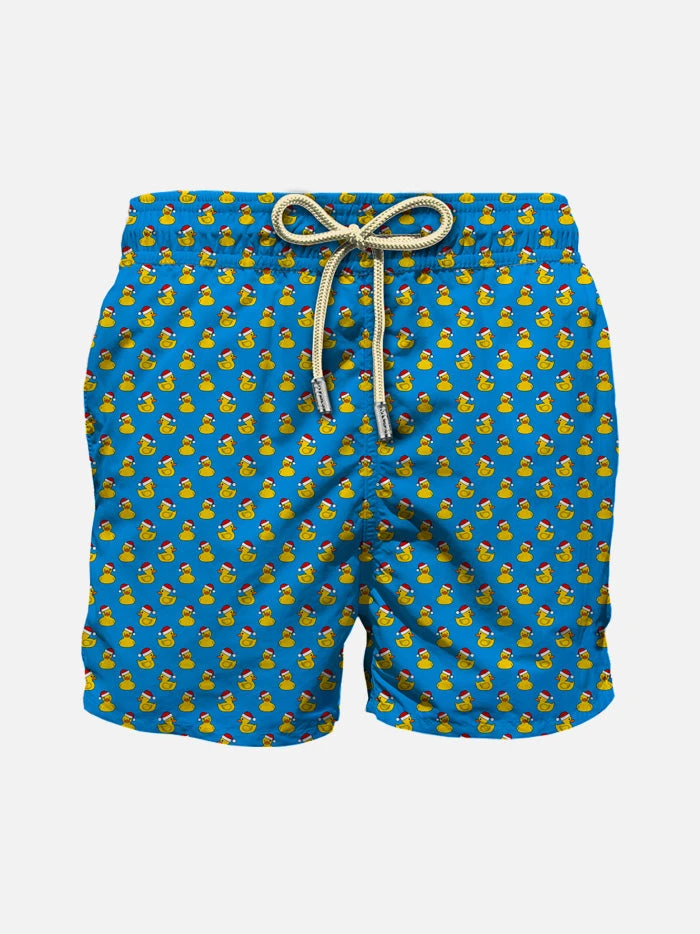 MC2 Saint Barth Boy Light Fabric Swim Shorts With Christmas Ducks Print