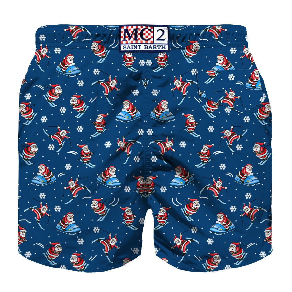MC2 Saint Barth Boy Light Fabric Swim Shorts With Happy Santa Claus Print