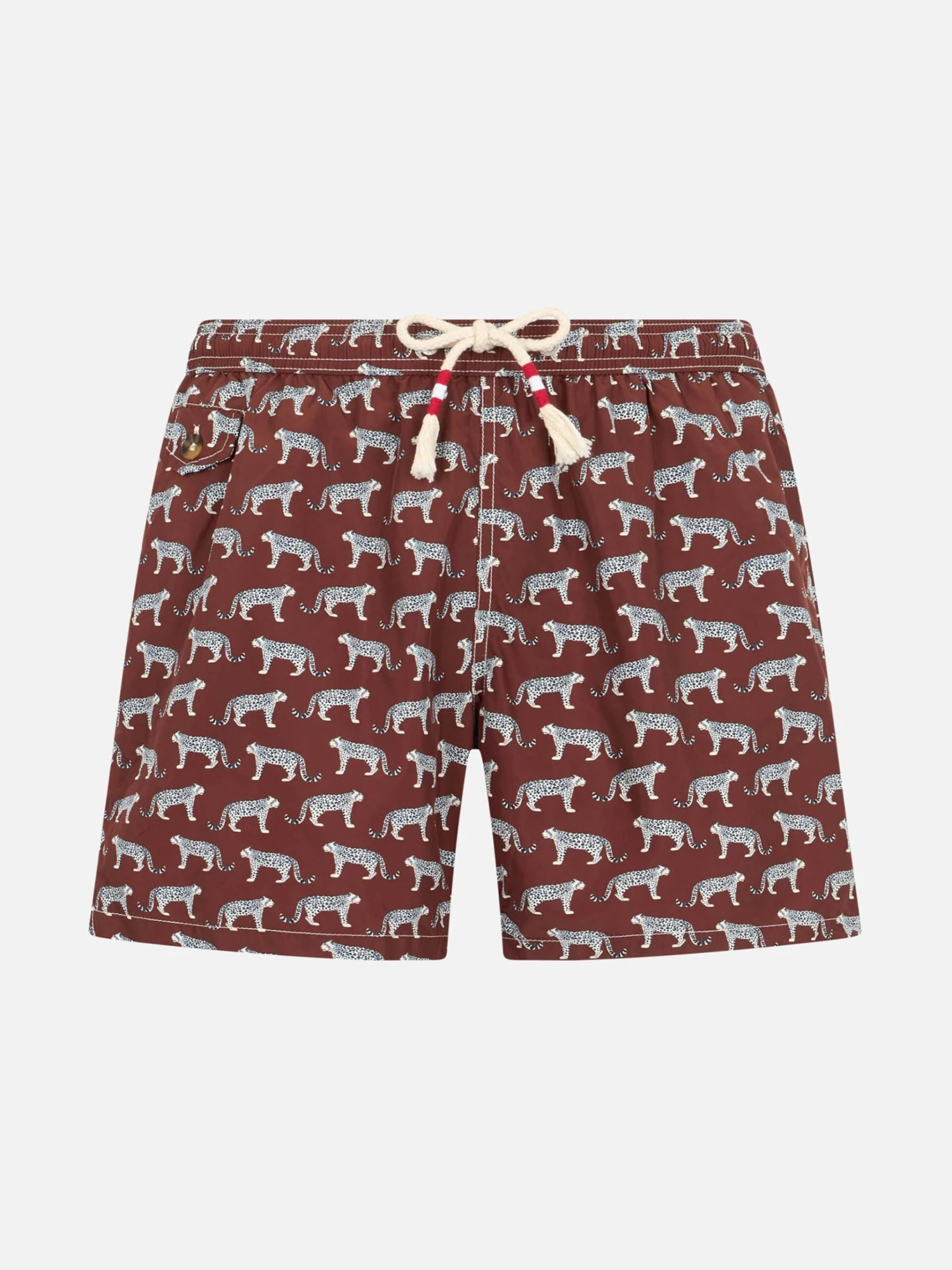 Boy Lighting 70 mid-length swim shorts are designed with a lightweight fabric that dries quickly, earning their name Jean Lighting. 70 is because the patterns chosen for this model evoke the elegance of those years, even on the beach, like maiolica and gipsy prints. The elasticized waistband ensures a comfortable fit, while the branded eyelets are strategically placed to drain water and prevent the shorts from ballooning. The white rope drawstring with red thread tip and the absence of metal components give it a retro touch. Featuring side pockets with French seams and a back patch pocket with a magnetic closure, these swim shorts are both practical and stylish. Additionally, there’s a small internal coin pocket for added convenience. The all-over print adds a touch of flair to this versatile swimwear option. Crafted from 100% recycled polyester, these shorts reflect our commitment to sustainability.