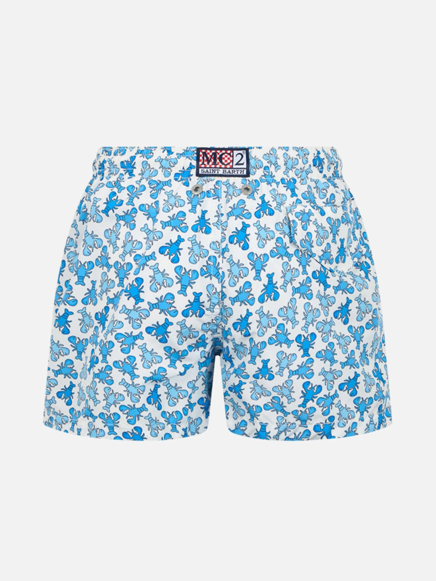 MC2 Saint Barth Boy Lightweight Fabric Swim-shorts Jean Lighting With Lobster Print