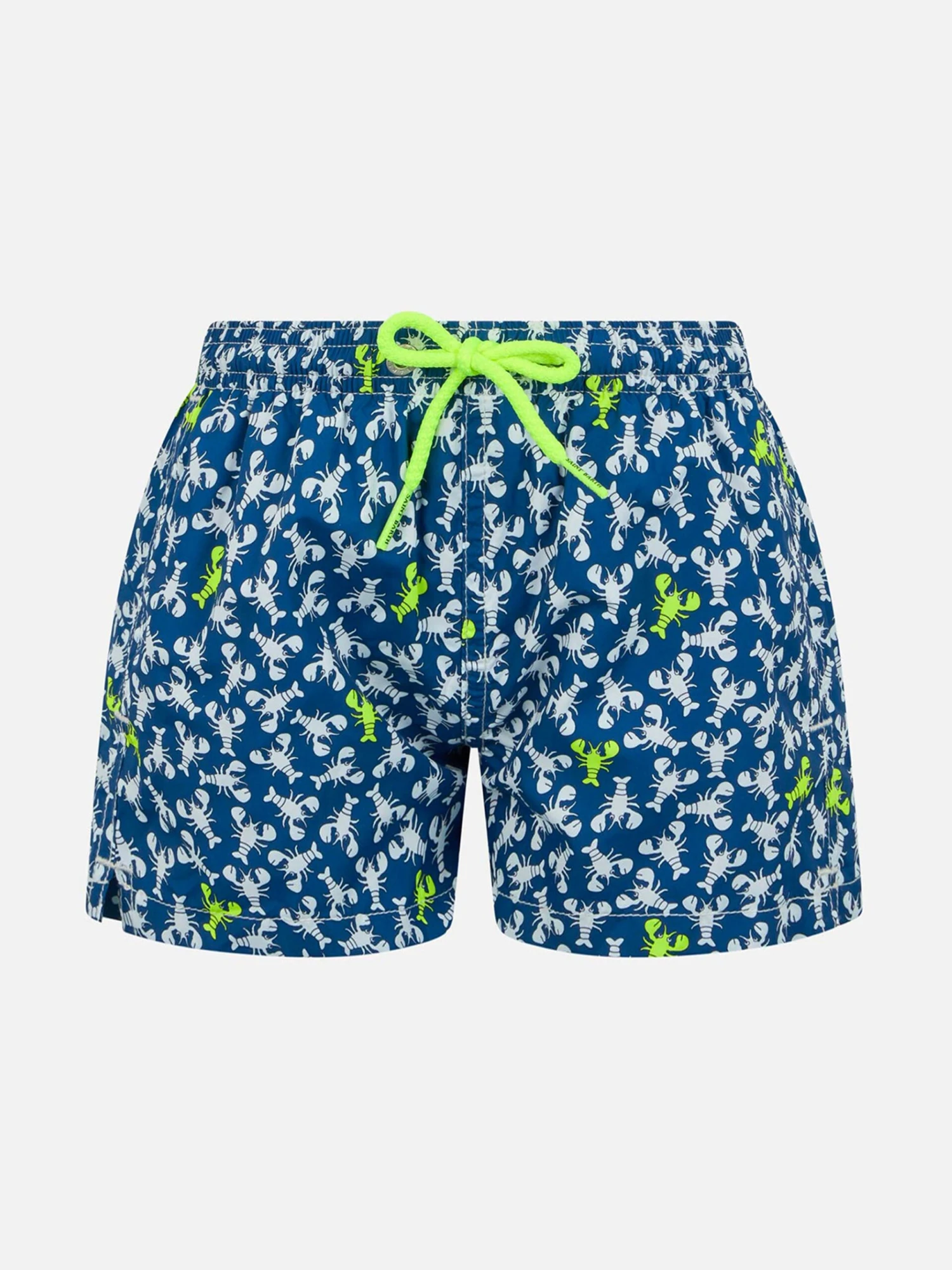 MC2 Saint Barth Boy Lightweight Fabric Swim-shorts Jean Lighting With Lobsters Print