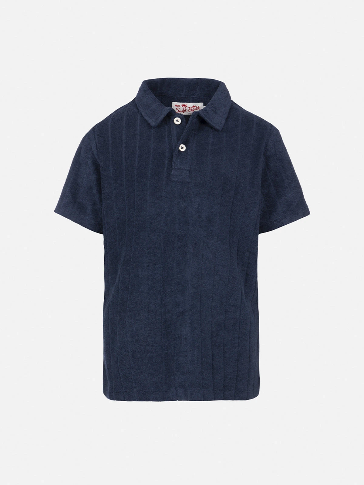MC2 Saint Barth Boy Navy Blue Terry Polo Shirt Jeremy Jr With Striped Embossed Pattern