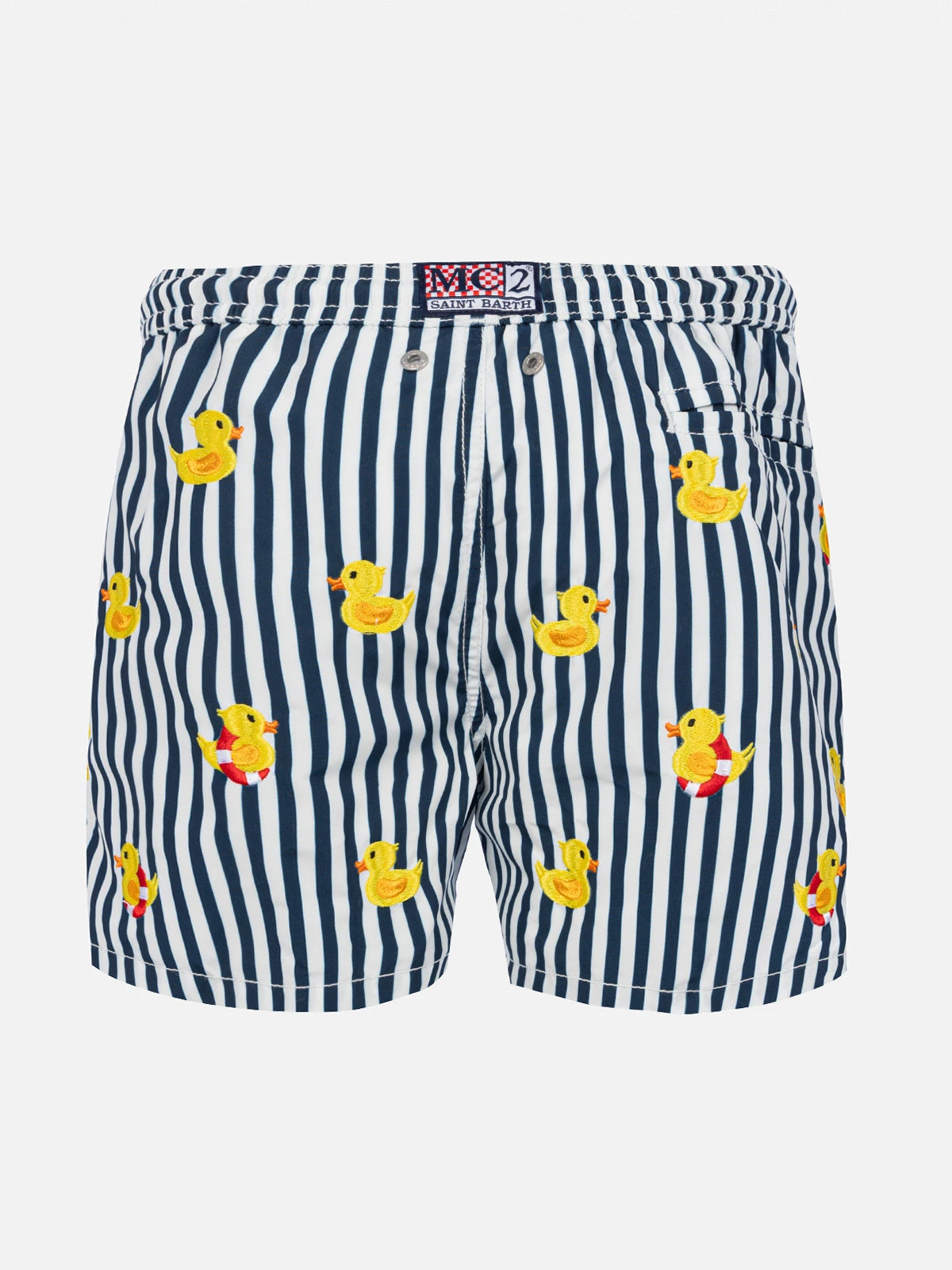 MC2 Saint Barth Boy Striped Swim Shorts With Embroidered Ducks