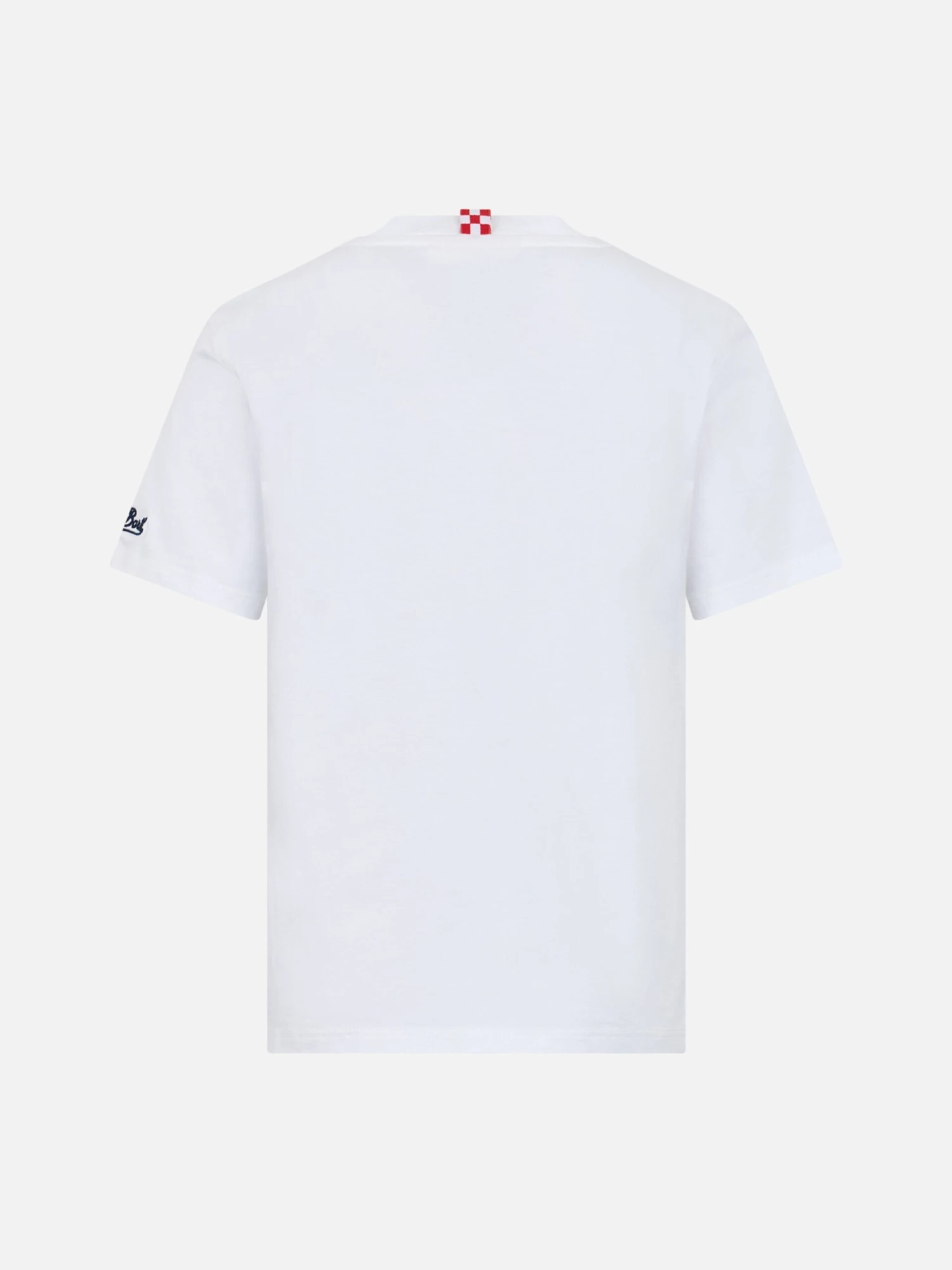 Introducing the T-shirt Boy, the iconic t-shirt from MC2 Saint Barth, featuring bold and large prints on the brand’s favorite themes, including travel, lifestyle, iconic destinations, cocktails, and the coolest collaborations. This boy half-sleeve t-shirt is crafted from 100% cotton jersey fabric with a piece-dyed finish and a lightweight feel. It boasts a regular fit for comfortable wear and is adorned with a print and embroidery on the chest, along with MC2 Saint Barth embroidery on the bottom of the left sleeve.