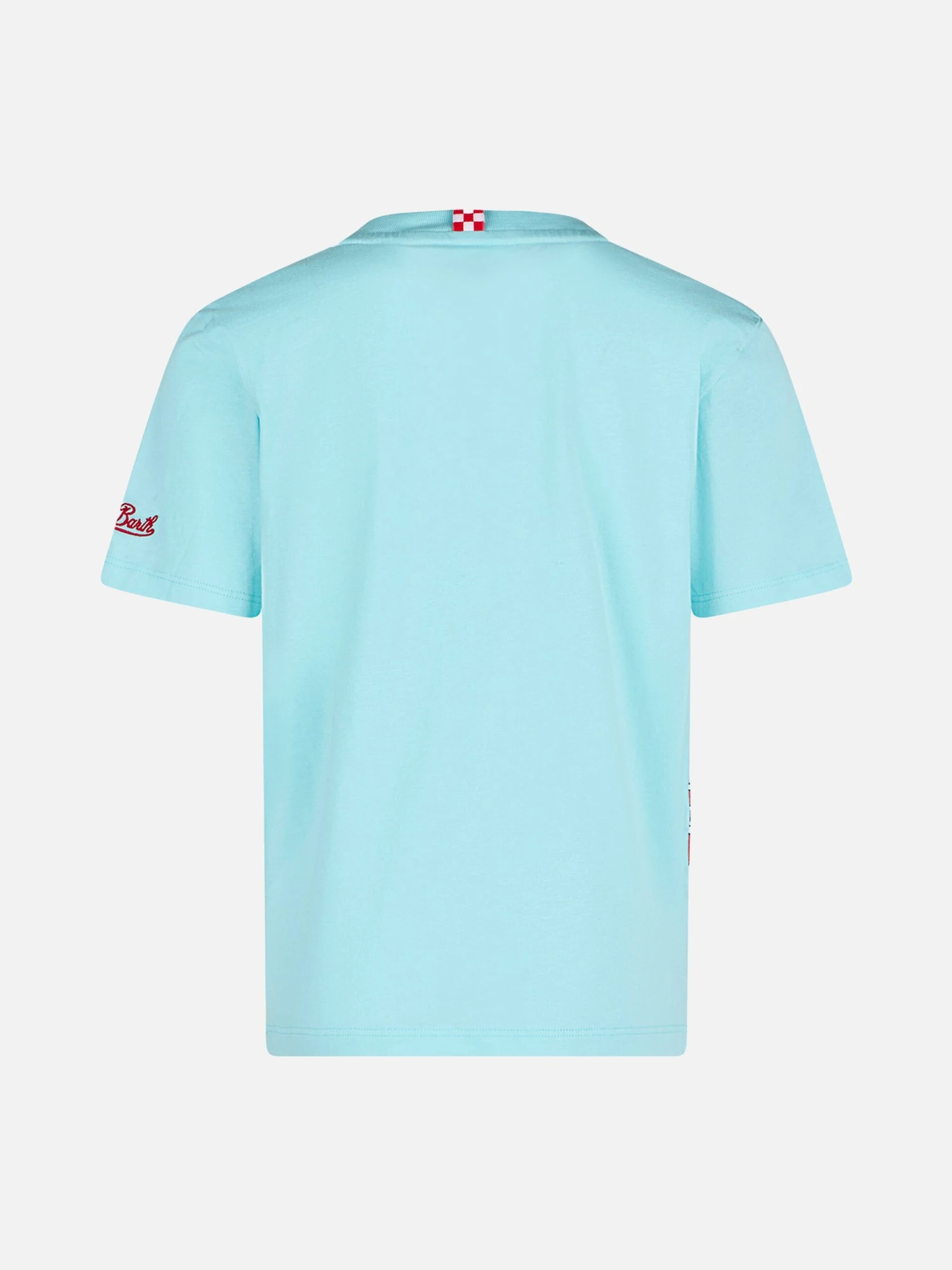 MC2 Saint Barth Boy Water Green Cotton T-shirt With Hot Wheels Print | HOT WHEELS SPECIAL EDITION