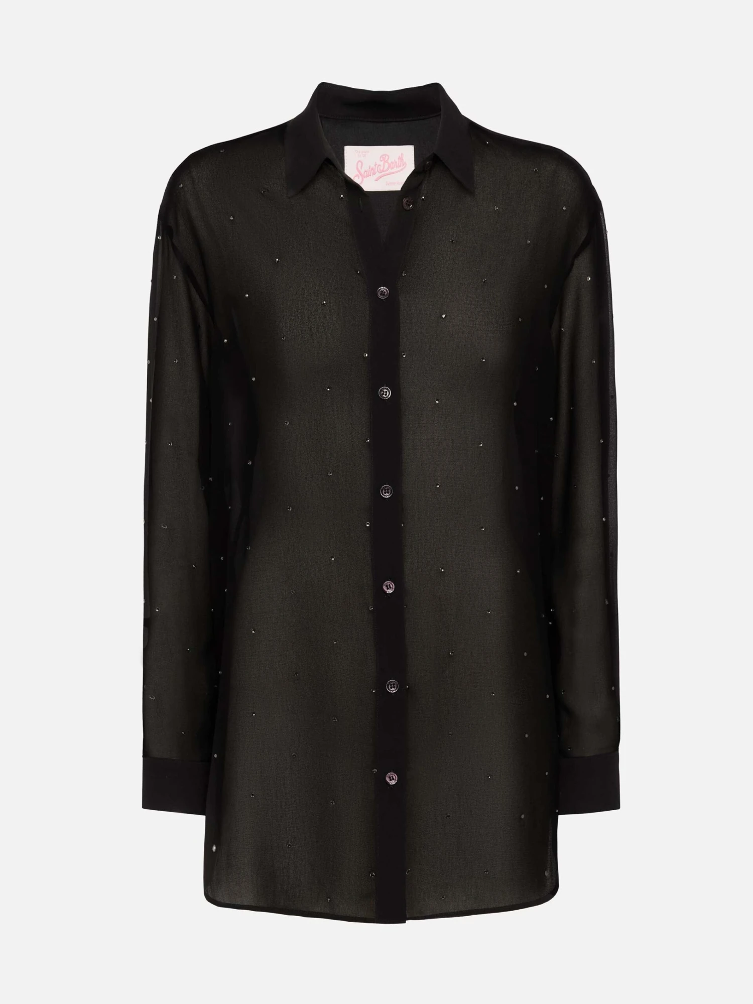 MC2 Saint Barth Brigitte Black Georgette Shirt With Rhinestone Embellishments