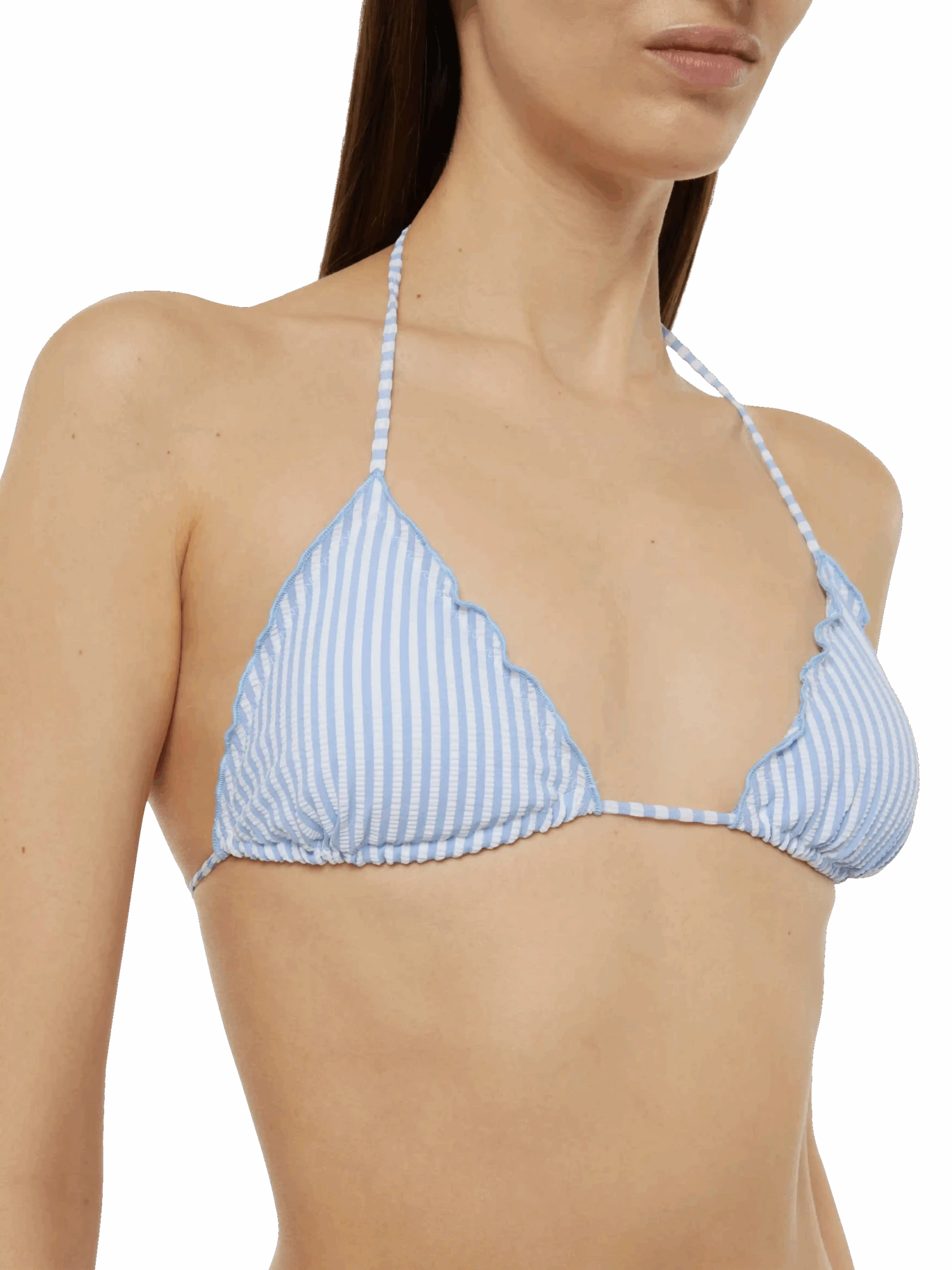 Timeless in design, this sliding triangle beach top on a thin strap is a summer wardrobe essential. Its slender and versatile straps can be worn straight or tied behind the neck, ensuring a customized fit for your tan