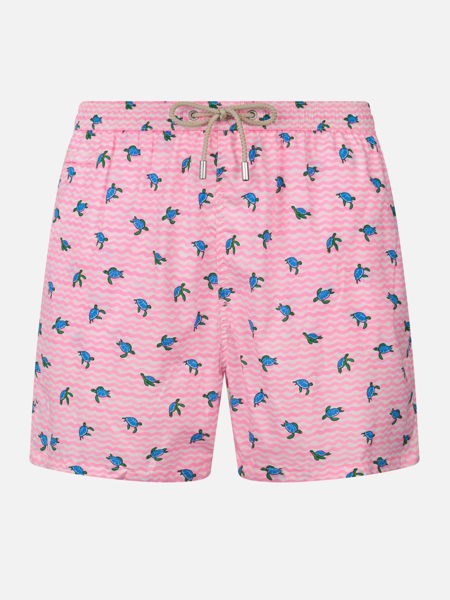 MC2 Saint Barth Comfort Light Classic Stretch Swim Shorts With Sea Turtles Print