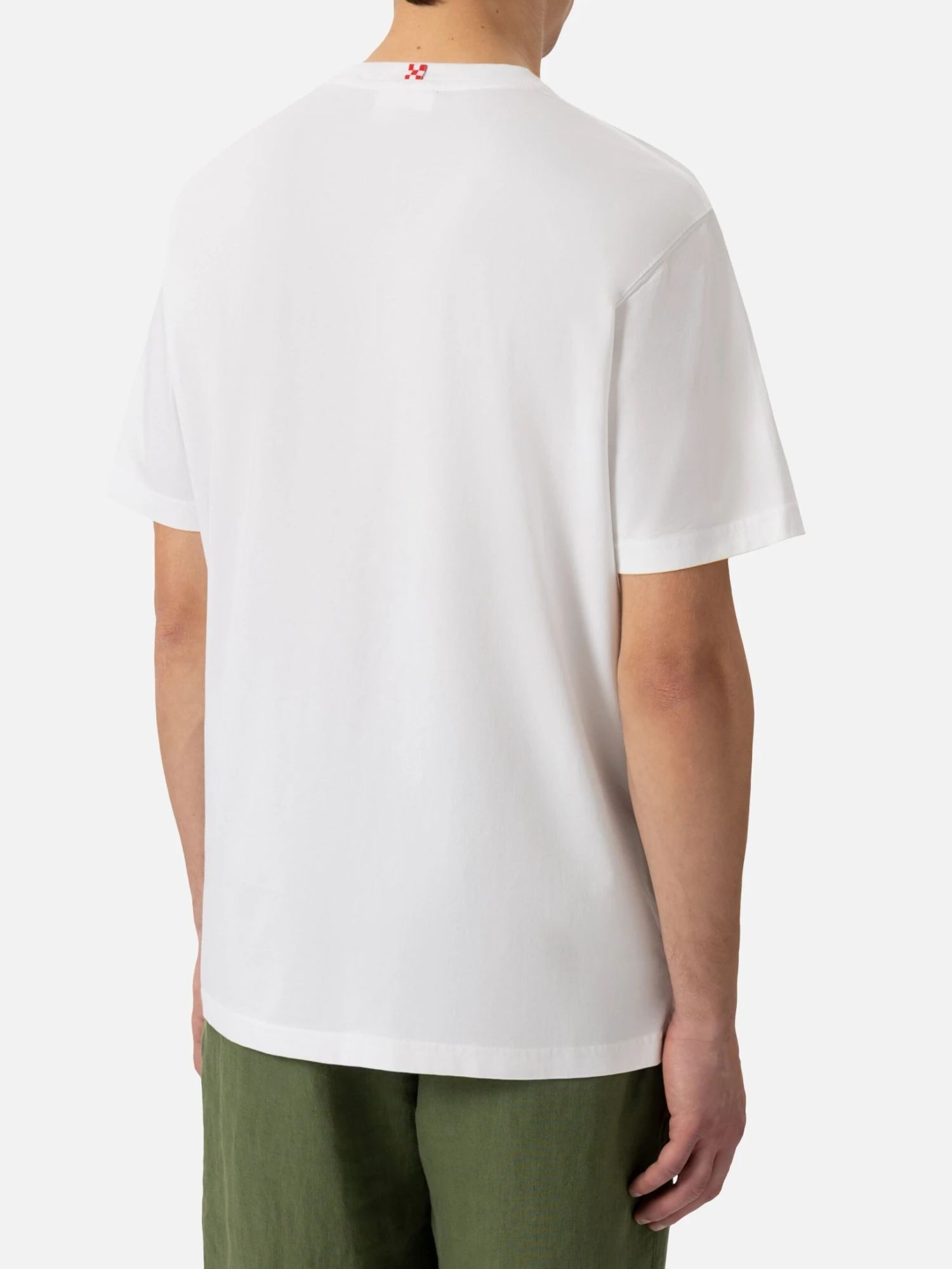 Introducing the T-shirt Man, the iconic men’s t-shirt from MC2 Saint Barth, featuring bold prints on themes like travel, lifestyle, and iconic destinations. Crafted from 100% cotton jersey with a piece-dyed finish, it offers a lightweight feel and a regular fit for comfort. The chest features a print and embroidery, with MC2 Saint Barth embroidery on the bottom of the left sleeve.