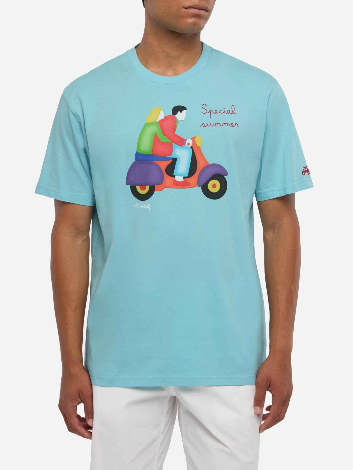 MC2 Saint Barth Cotton T-shirt With Lodola Scooter Print | MARCO LODOLA SPECIAL EDITION