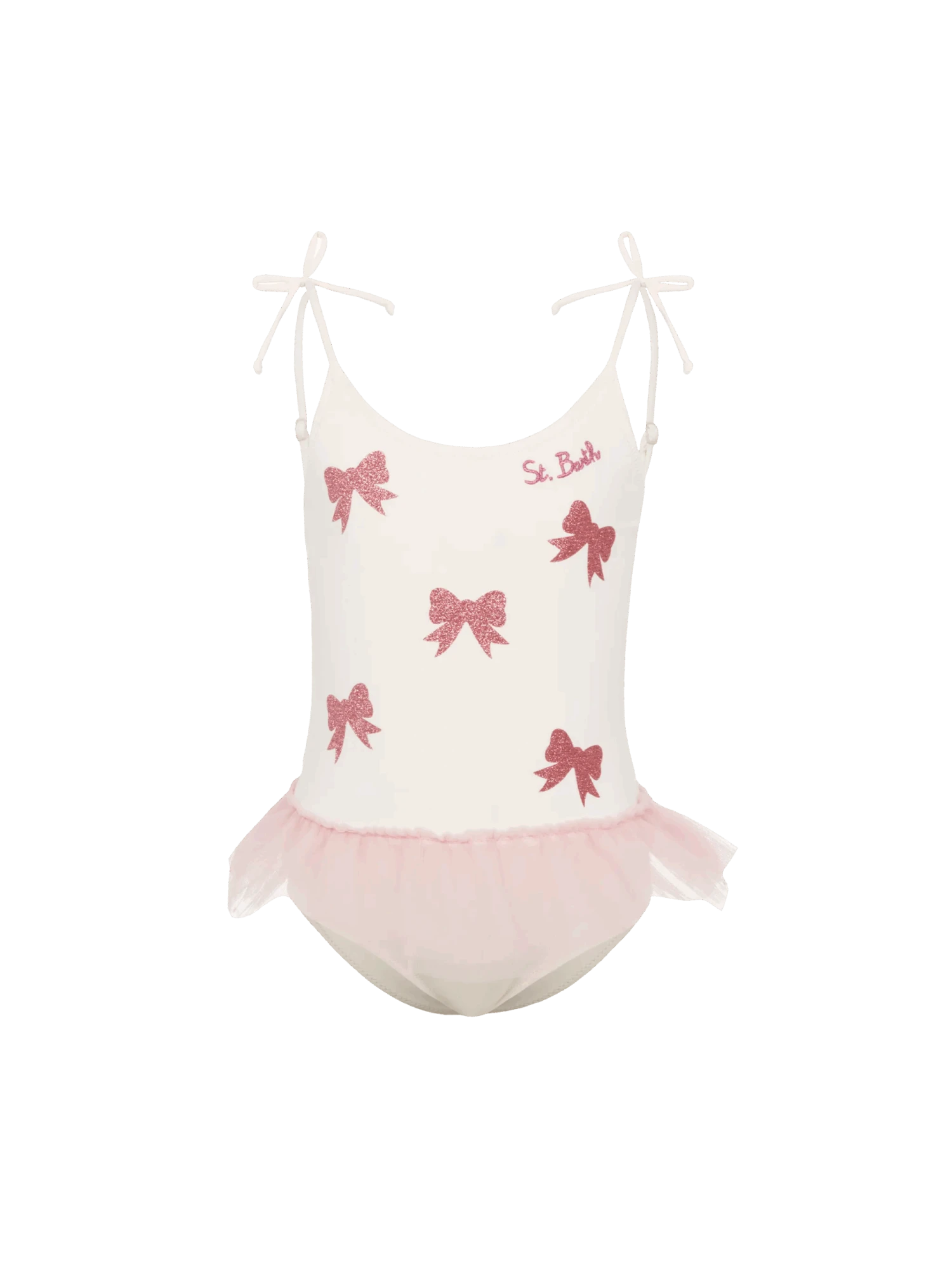 MC2 Saint Barth Dancer One-piece Swimsuit With Tulle Ruffle And Glittered Bows