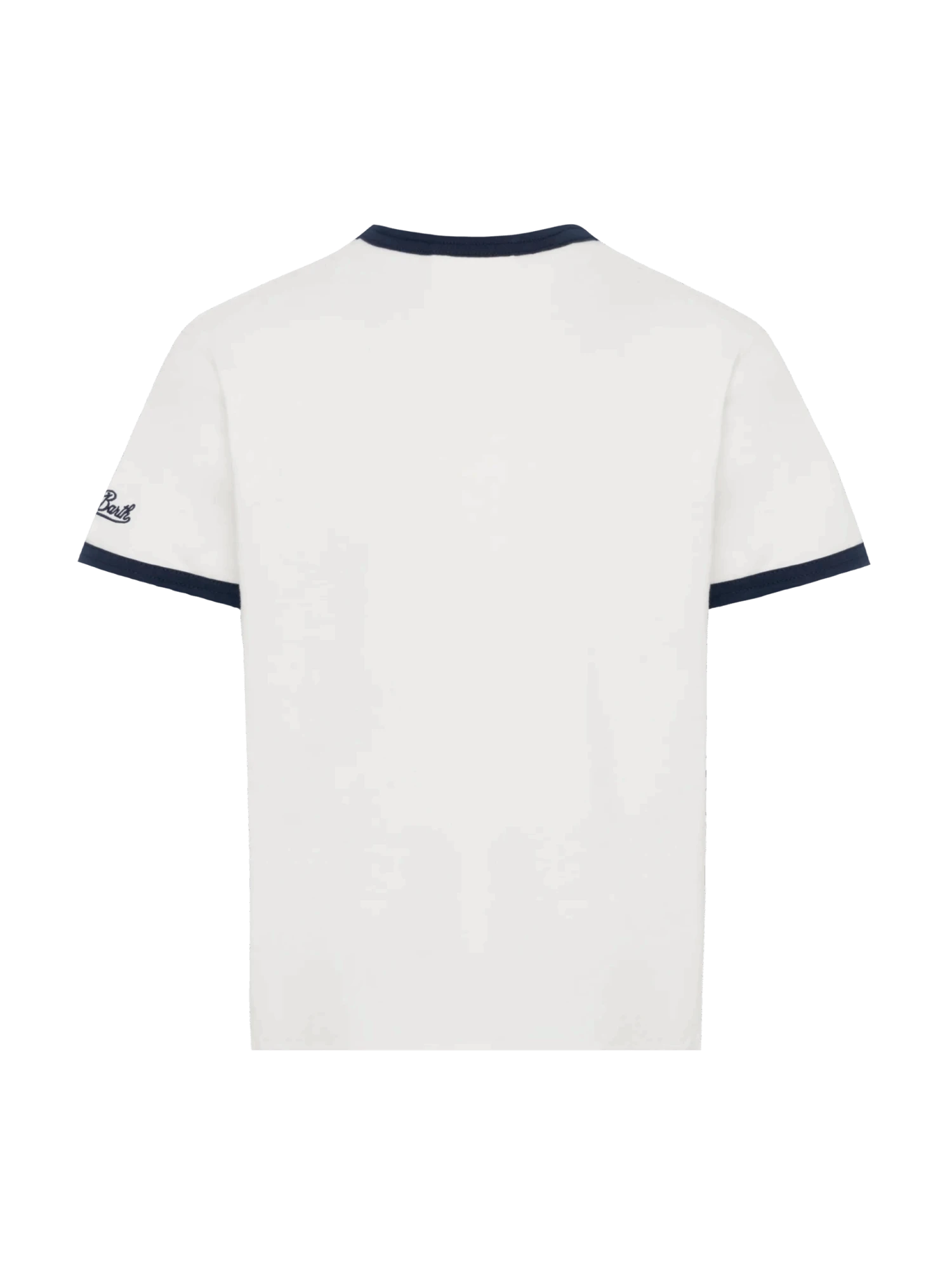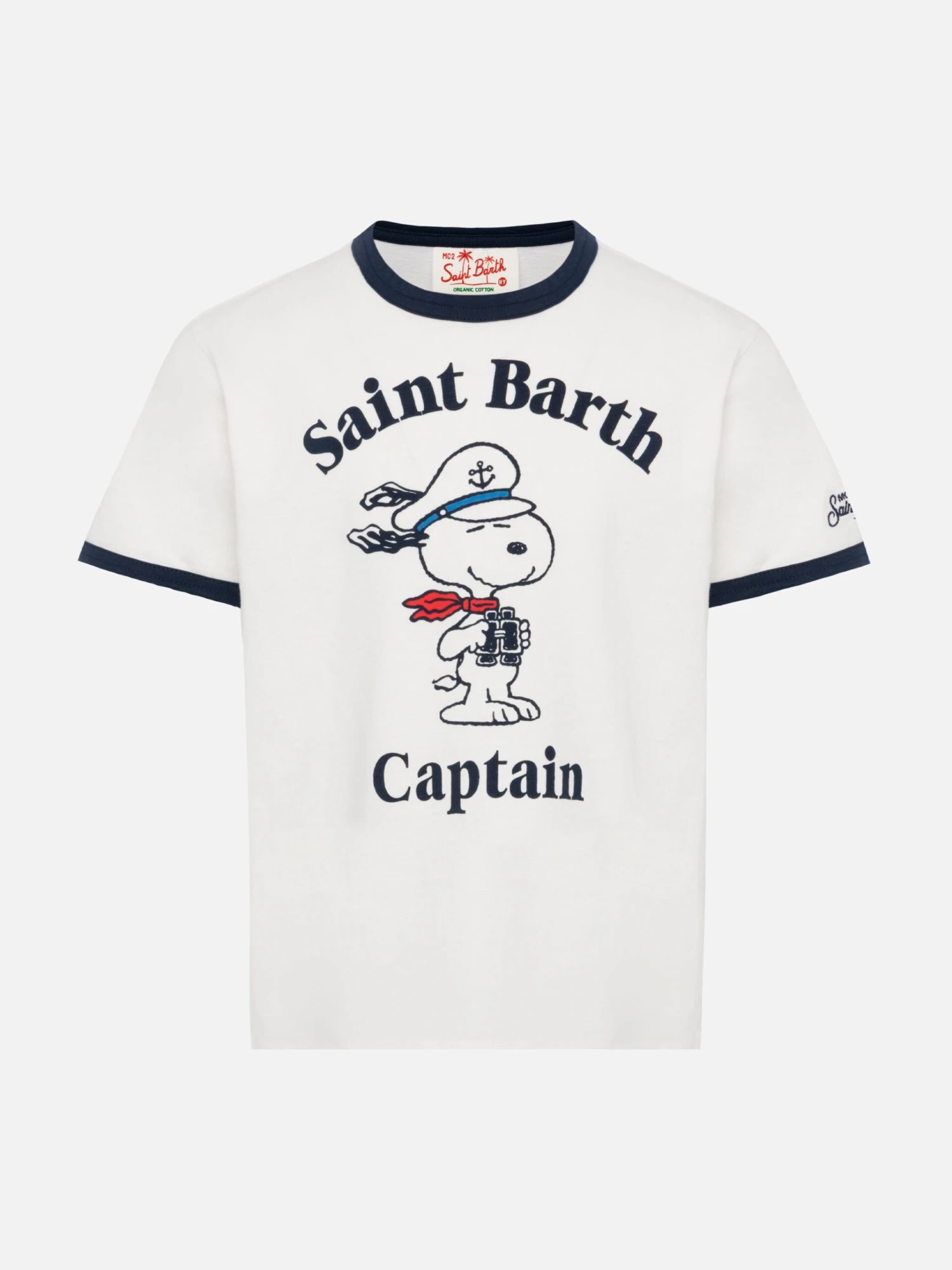 Introducing our Dean Jr crew neck t-shirt, crafted from 100% cotton and available in a variety of solid colors. This essential piece features the exclusive Saint Barth logo embroidered on the chest, adding a touch of sophistication to your everyday wardrobe.