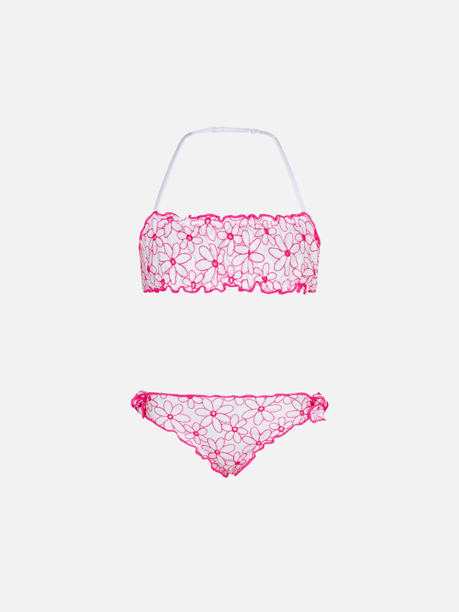 MC2 Saint Barth Girl Bandeau Bikini With Daisy Embroidery