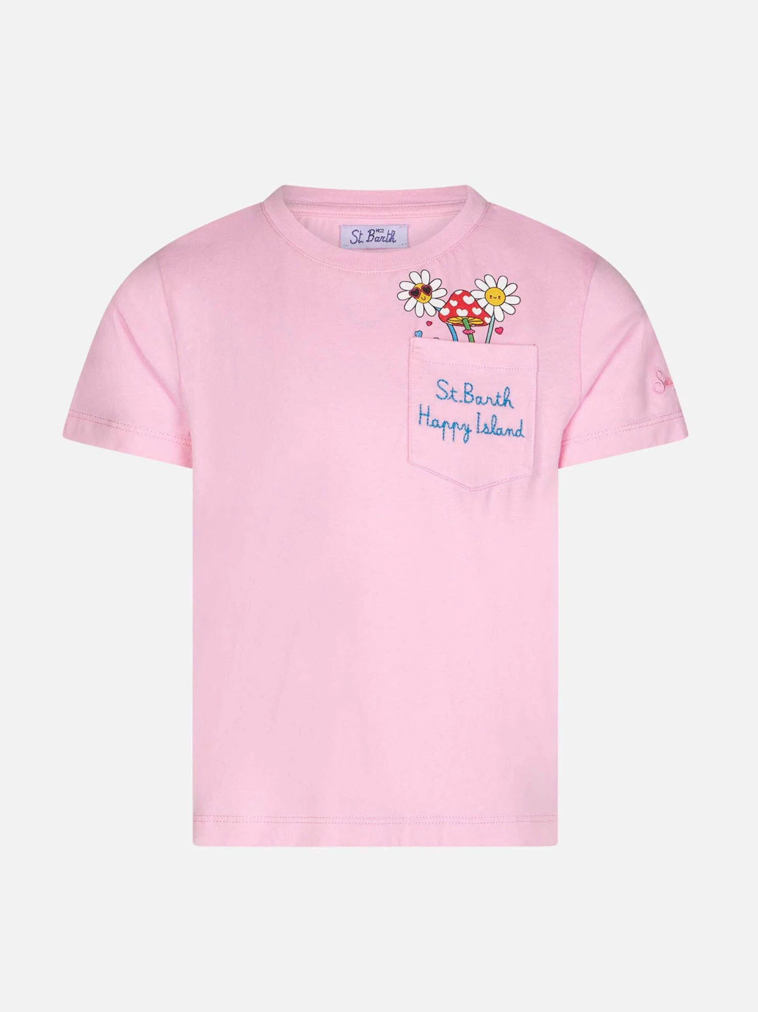 MC2 Saint Barth Girl Cotton T-shirt With St. Barth Happy Island Embroidery