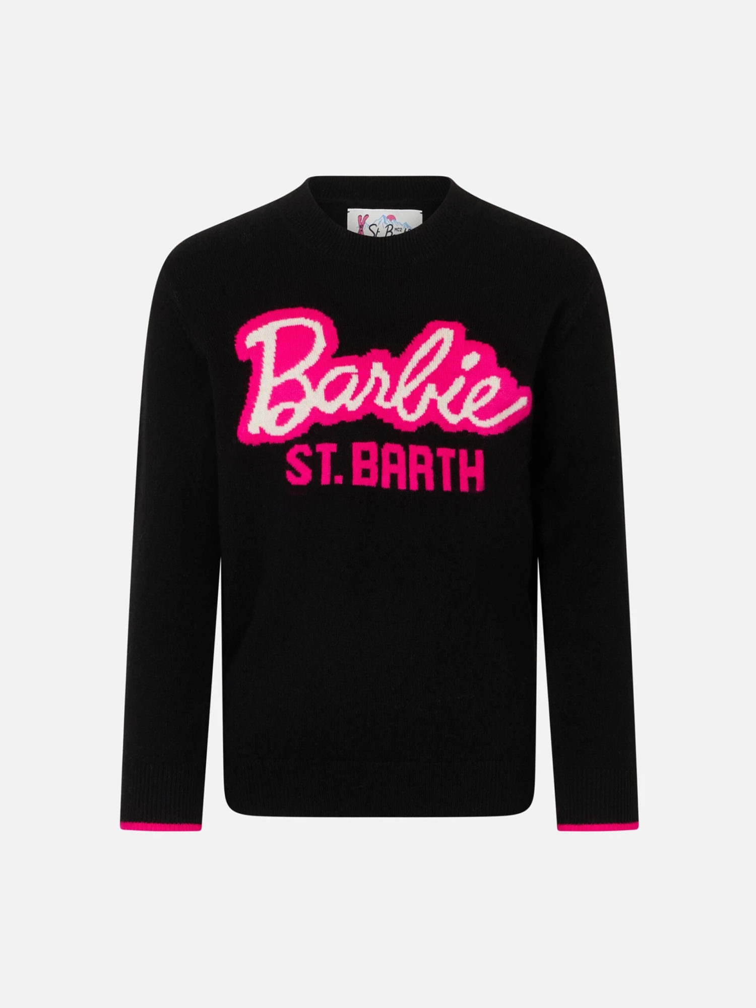 MC2 Saint Barth Girl Crewneck Black Sweater With Barbie Jacquard | BARBIE SPECIAL EDITION