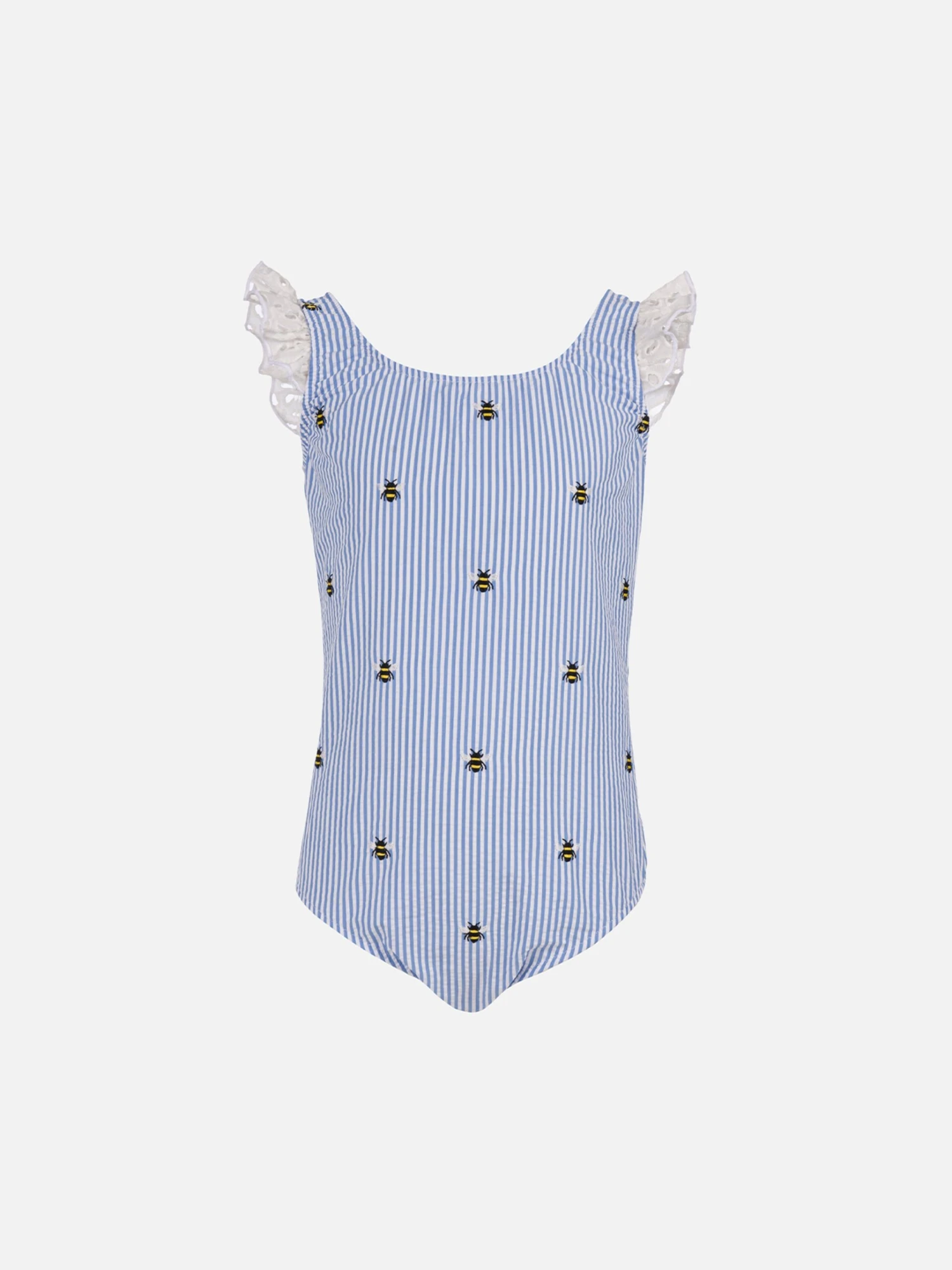 MC2 Saint Barth Girl Seersucker Cotton One Piece Swimsuit Tilda With Ruffled Straps