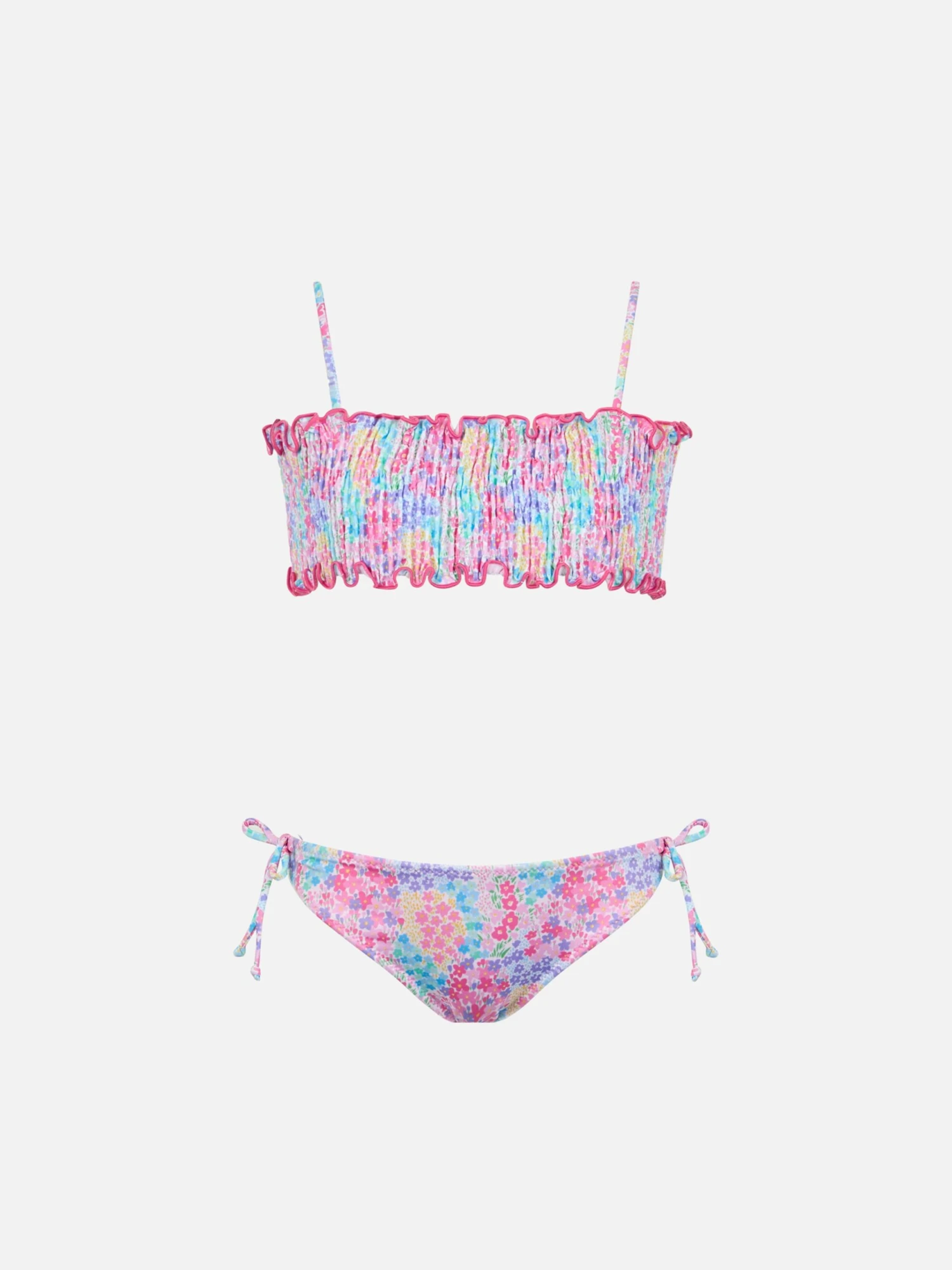 MC2 Saint Barth Girl Smocked Point Embroidery Bikini Tilly With Flower Print