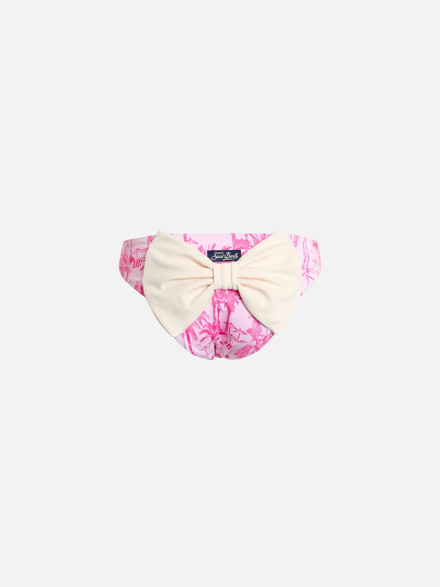 MC2 Saint Barth Girl Swim Briefs Madame With Bow And Toile De Jouy Print