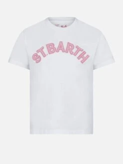 Girl white t-shirt with pink St. Barth patches