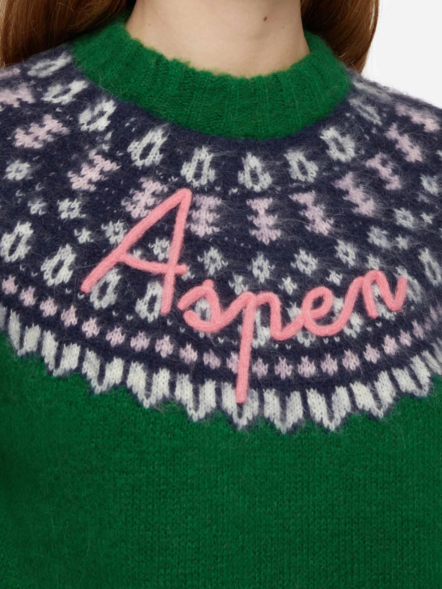 MC2 Saint Barth Green Sweater Queen Nordic Soft With Fair Isle Jacquard And Aspen Embroidery