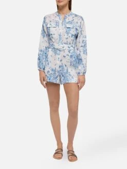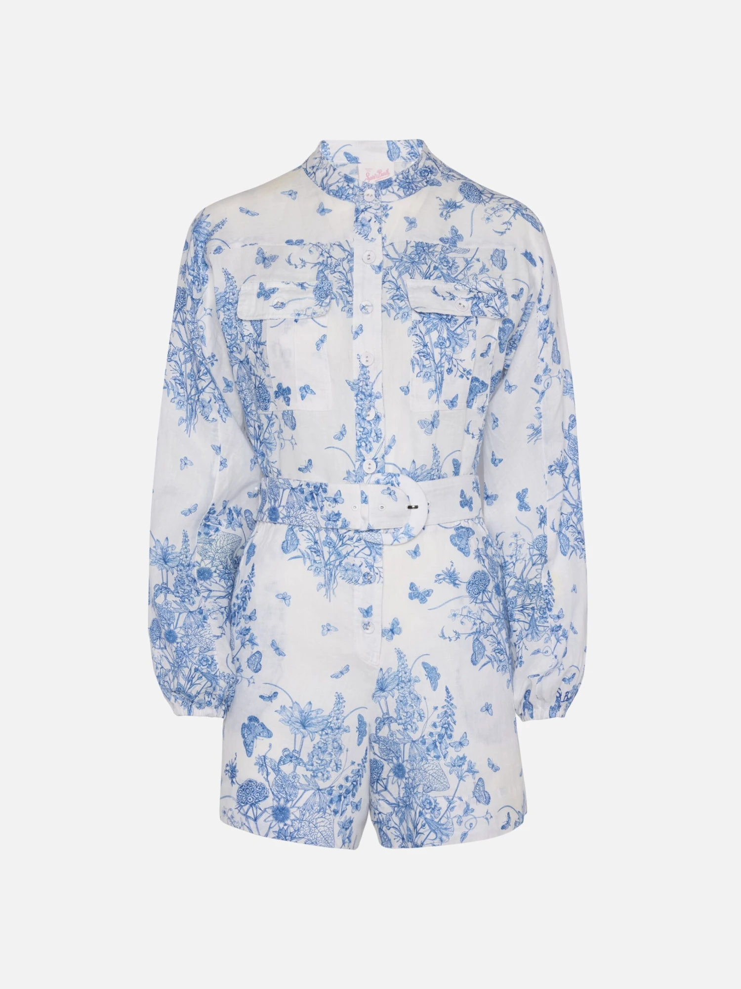 MC2 Saint Barth Hanniel Linen Playsuit With Butterfly Toile De Jouy Print