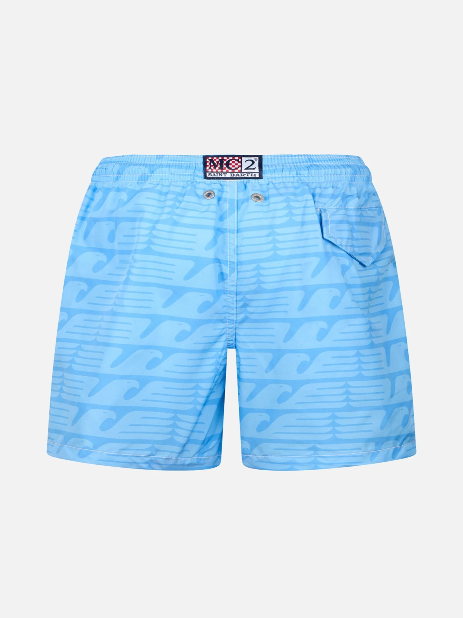 Jean Lighting mid-length swim shorts are the mini-me version of the Lighting model, designed for comfort and quick drying. Featuring an elasticized waistband, branded eyelets for water drainage, and practical pockets, they combine style and functionality. Made from 100% recycled polyester, they reflect MC2 Saint Barth’s commitment to sustainability.