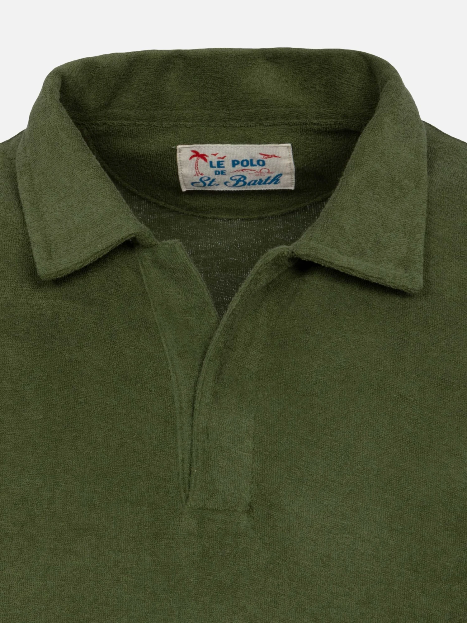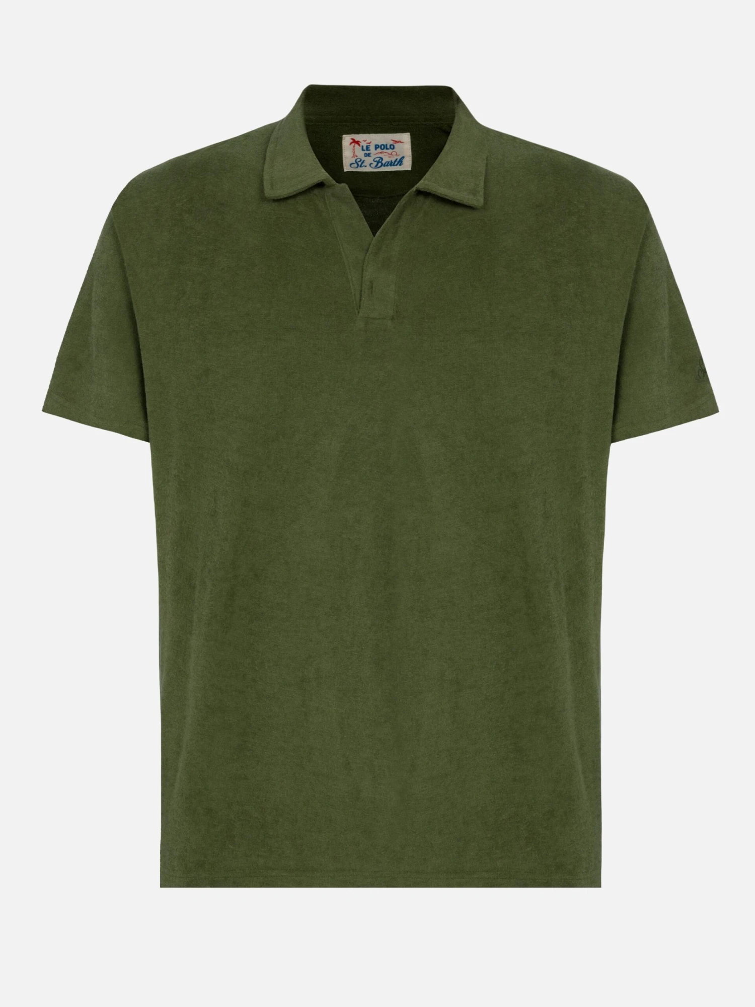 MC2 Saint Barth Jeremy Military Green Terry Buttonless Polo Shirt