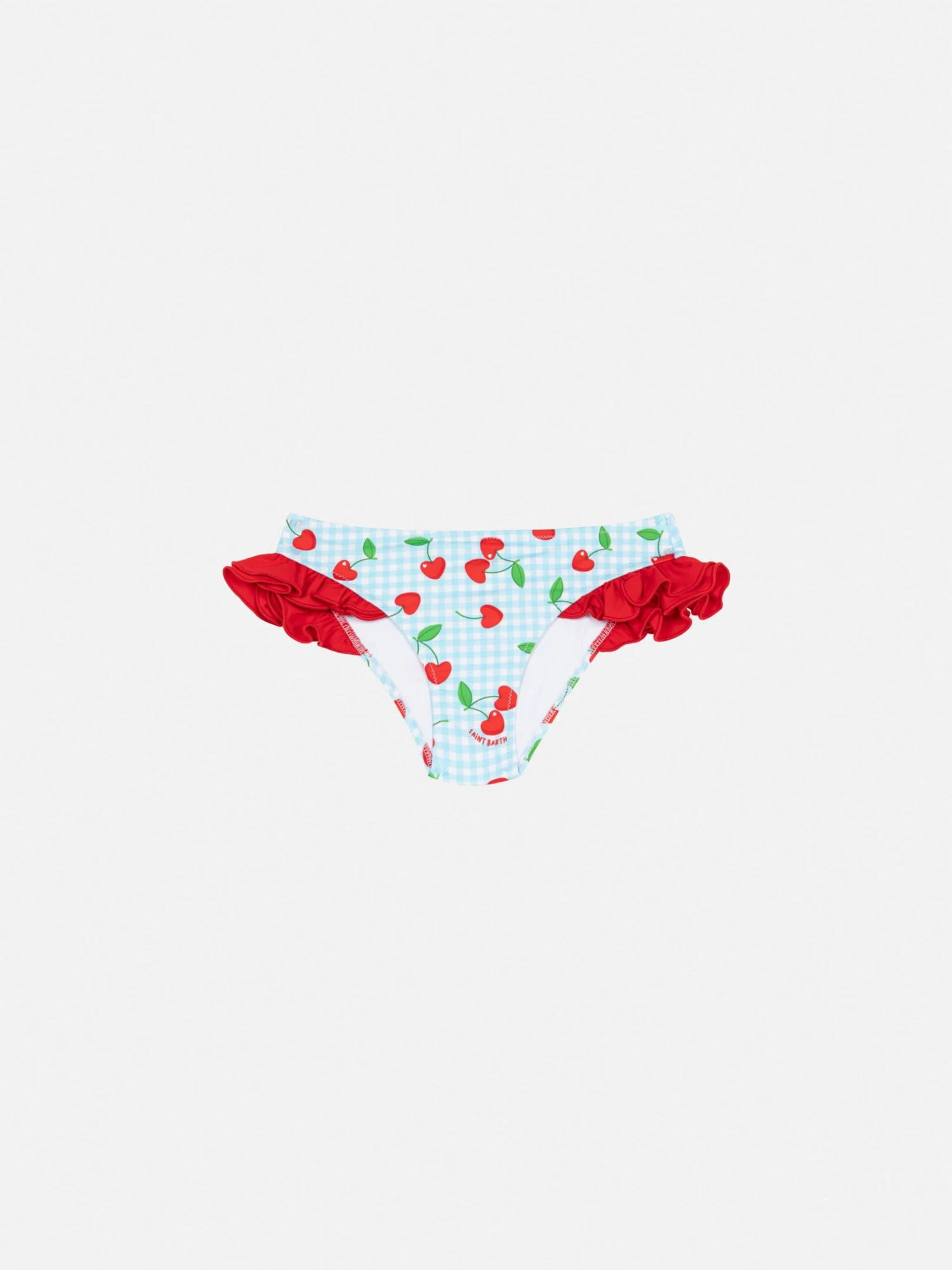 Sweet and playful, the Kelly ruffled swim briefs are a must-have for little beach lovers. Featuring a charming mix of cherry and light blue gingham prints, they bring a touch of vintage-inspired fun to sunny days.