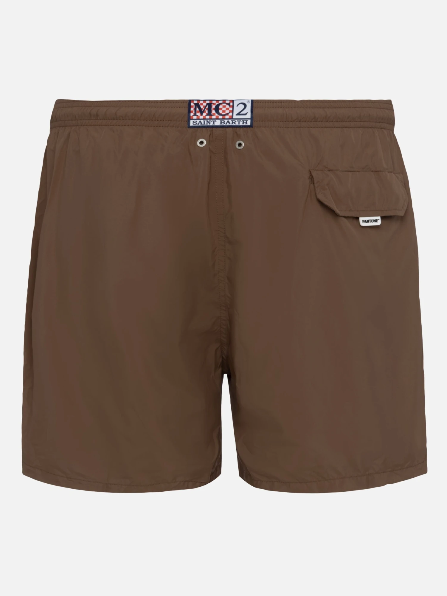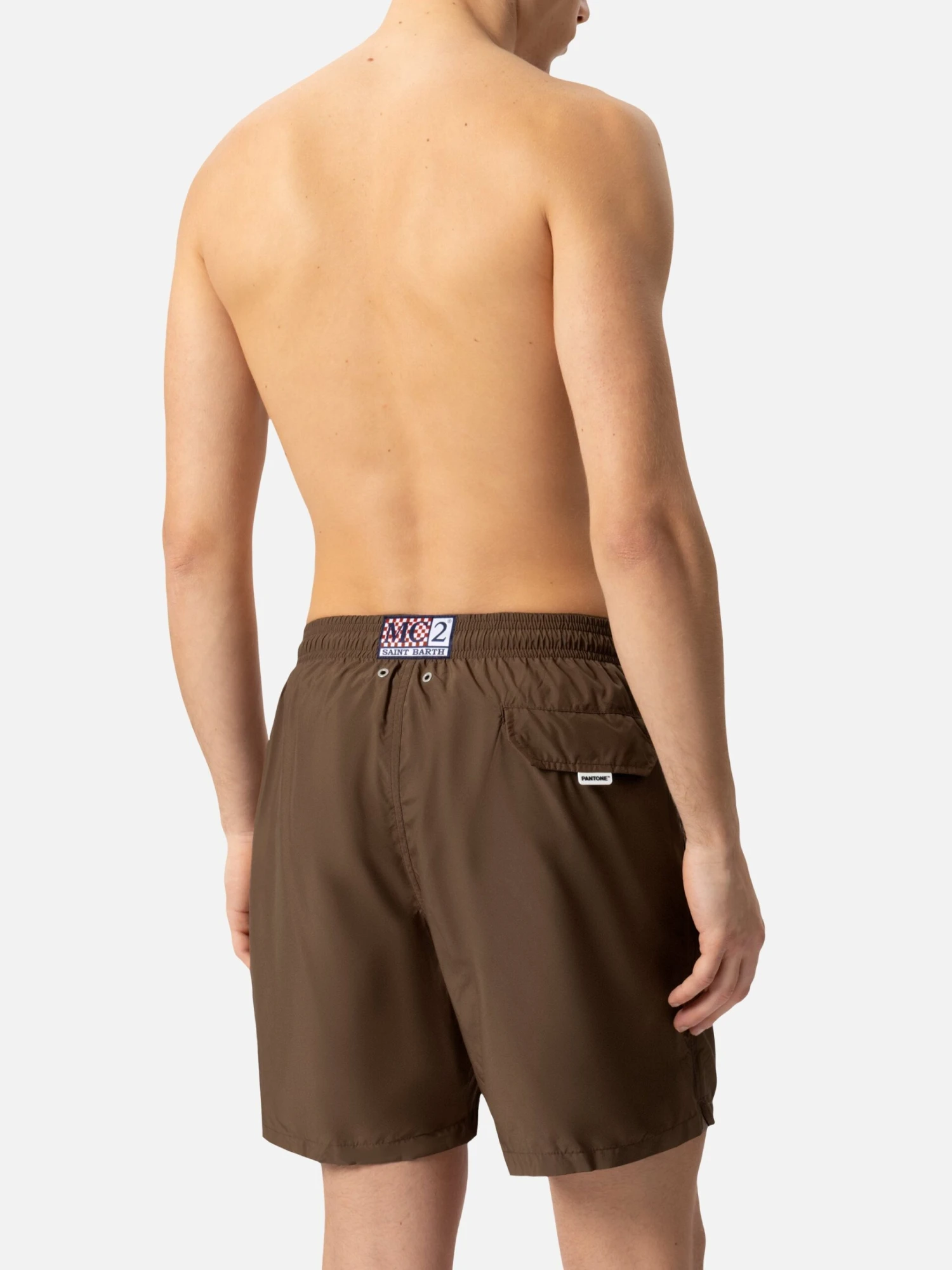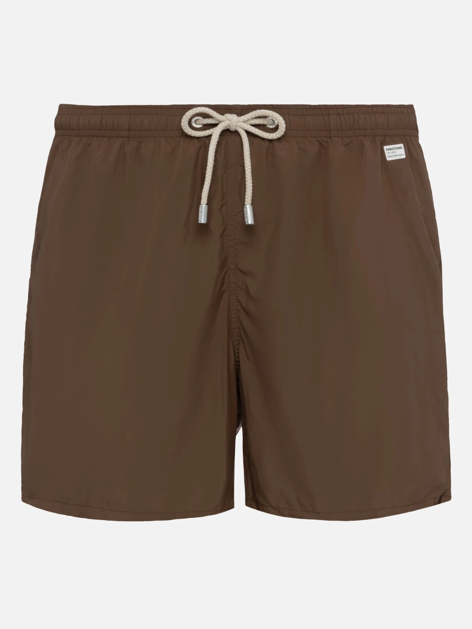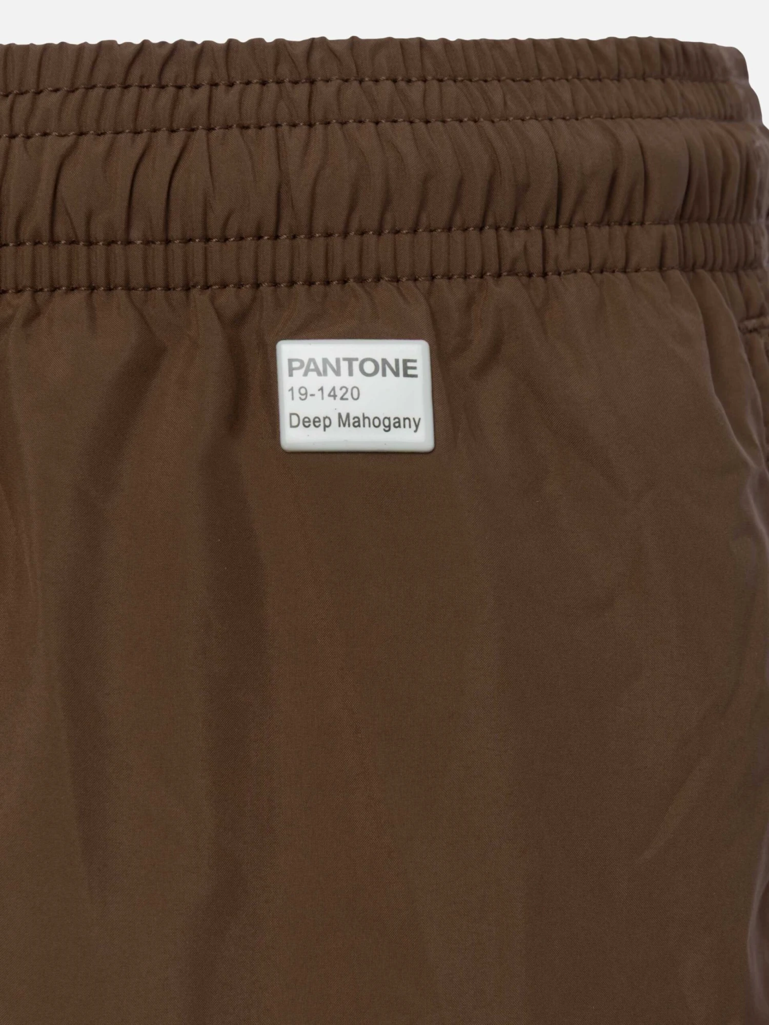 Introducing our exclusive collaboration with Pantone, the global authority on color. These lightweight, quick-drying swim shorts feature a solid color, contrasting drawstring waist, and a Pantone-branded metal plate. Designed for comfort, they include side pockets, drainage eyelets, and a rear pocket with a magnetic closure. Plus, they can be folded into the rear pocket. Dive into style with our Pantone swim shorts.