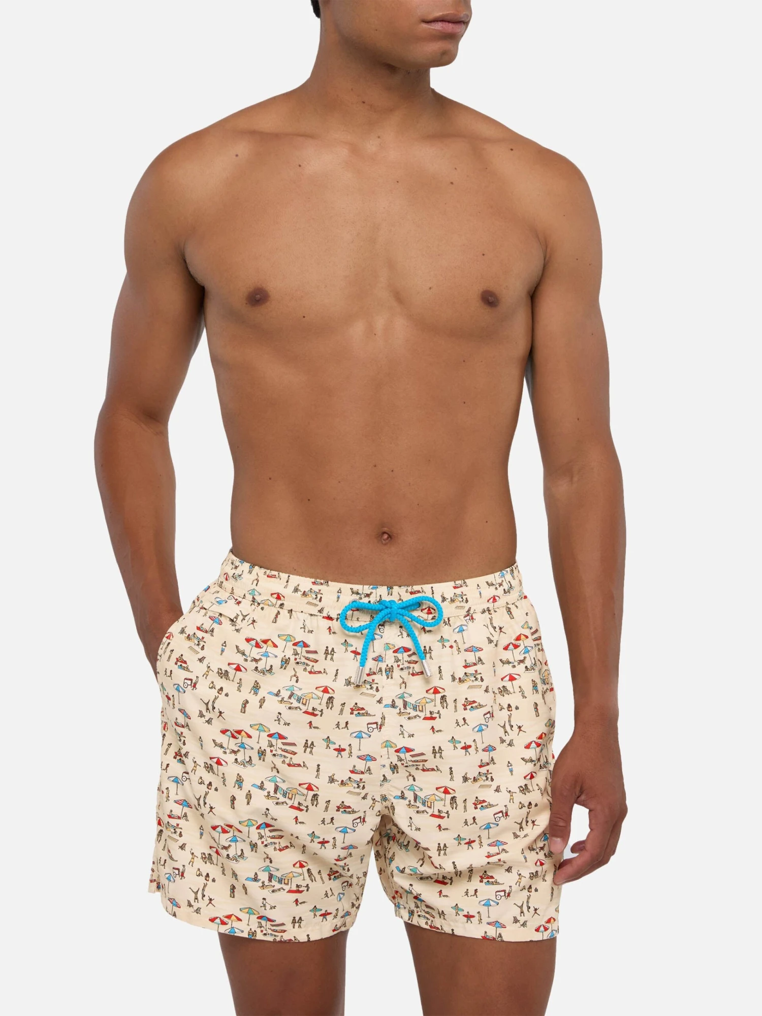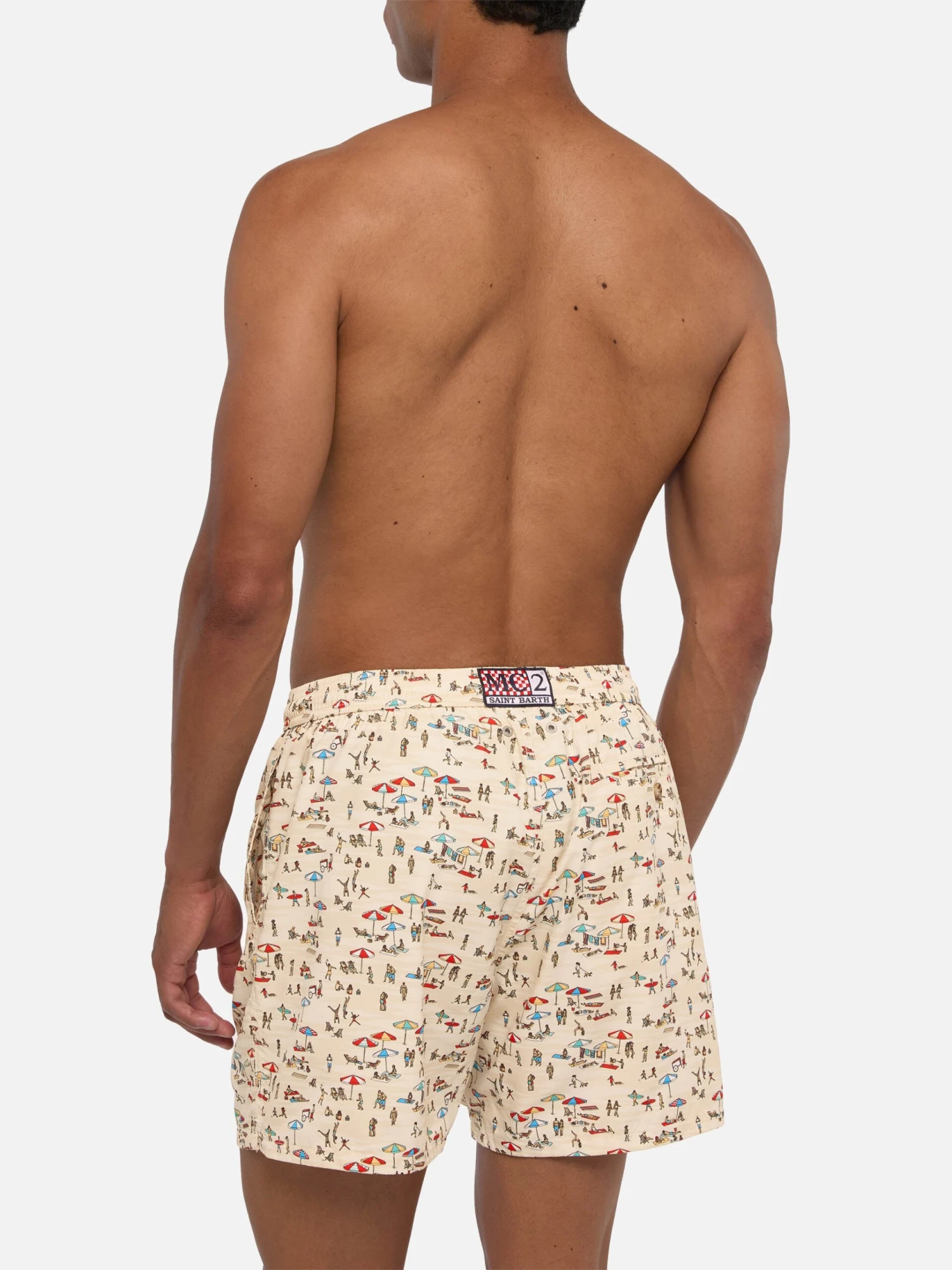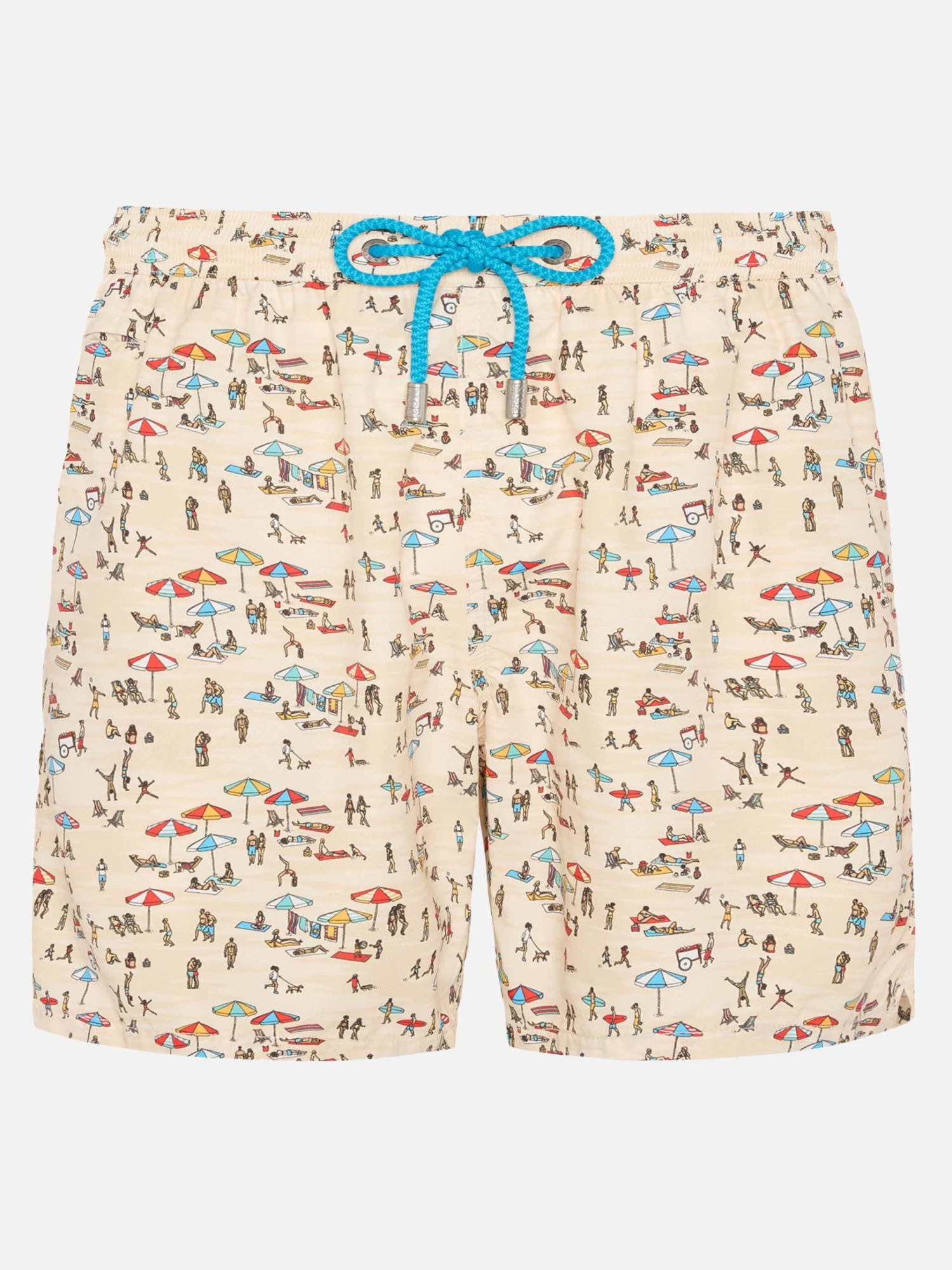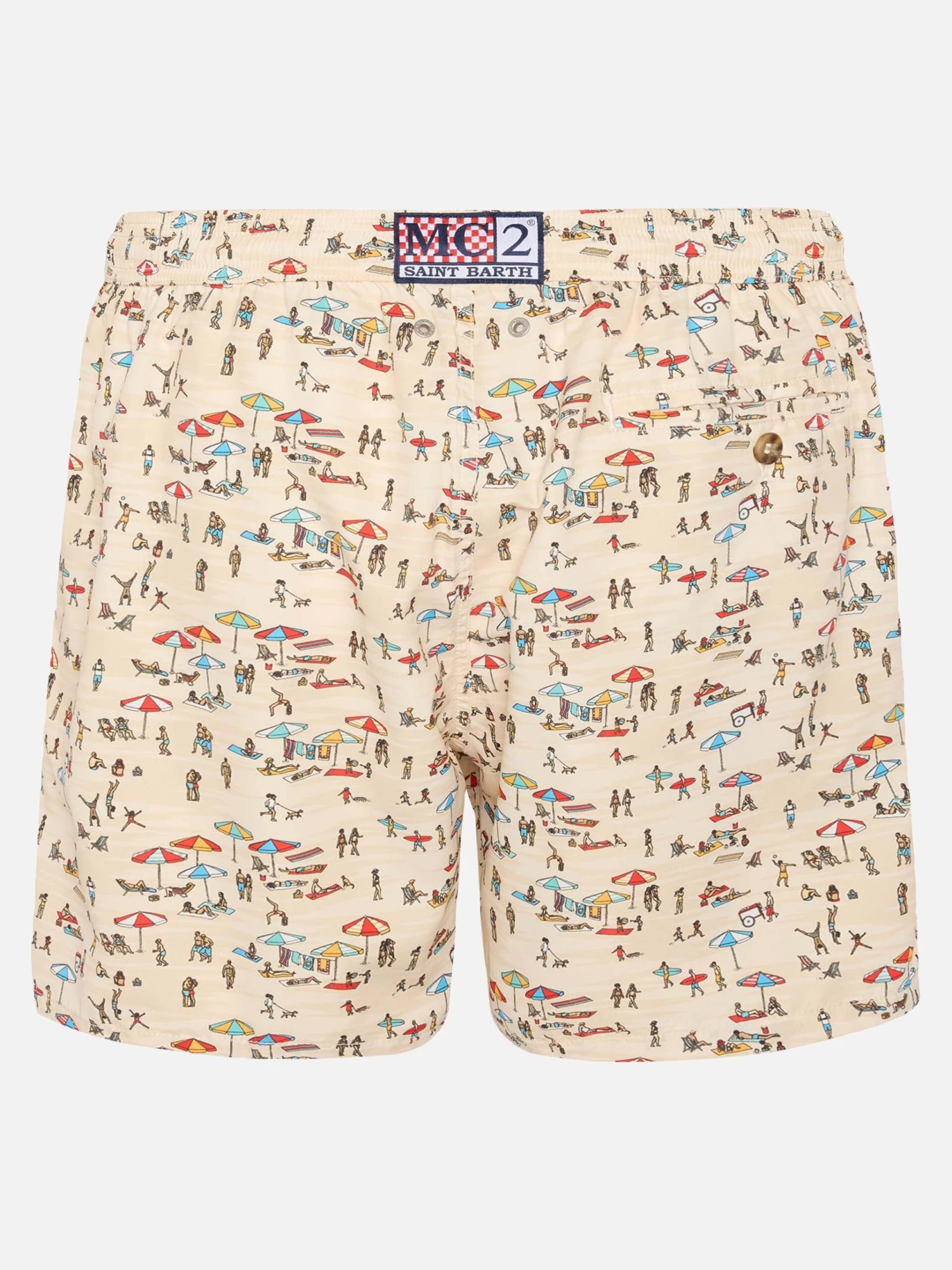 MC2 Saint Barth Lightweight Fabric Swim Shorts Lighting With Beach People Print