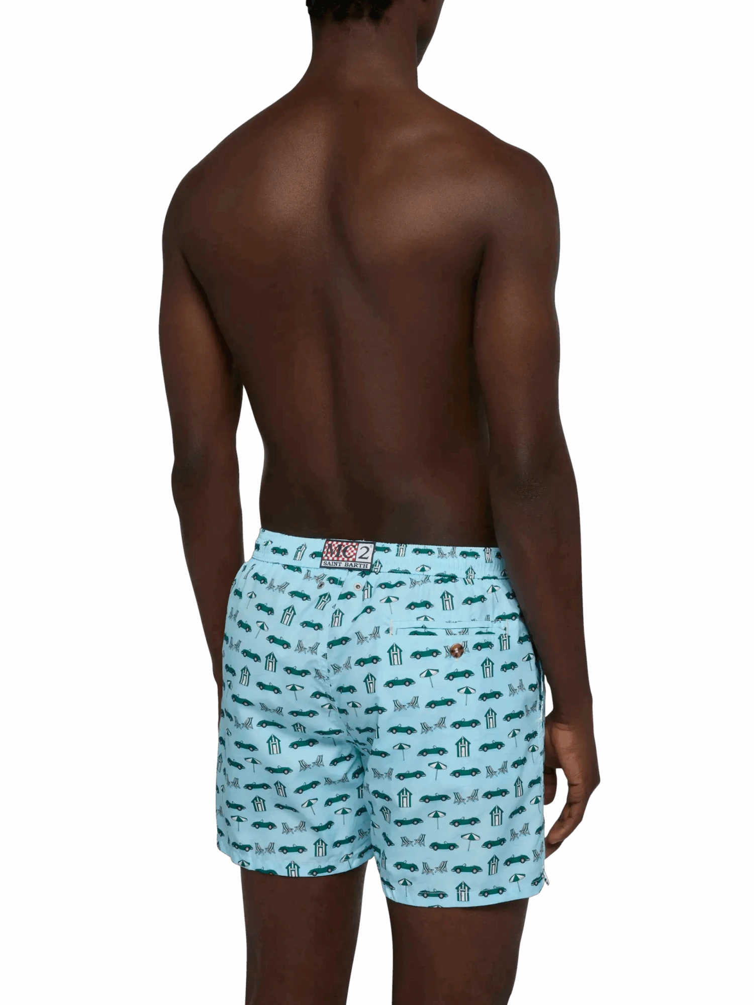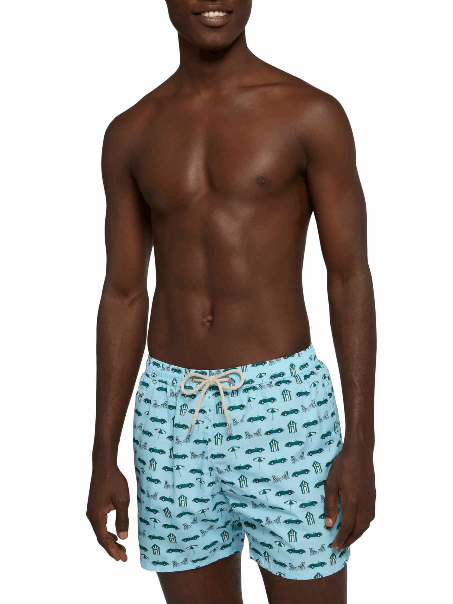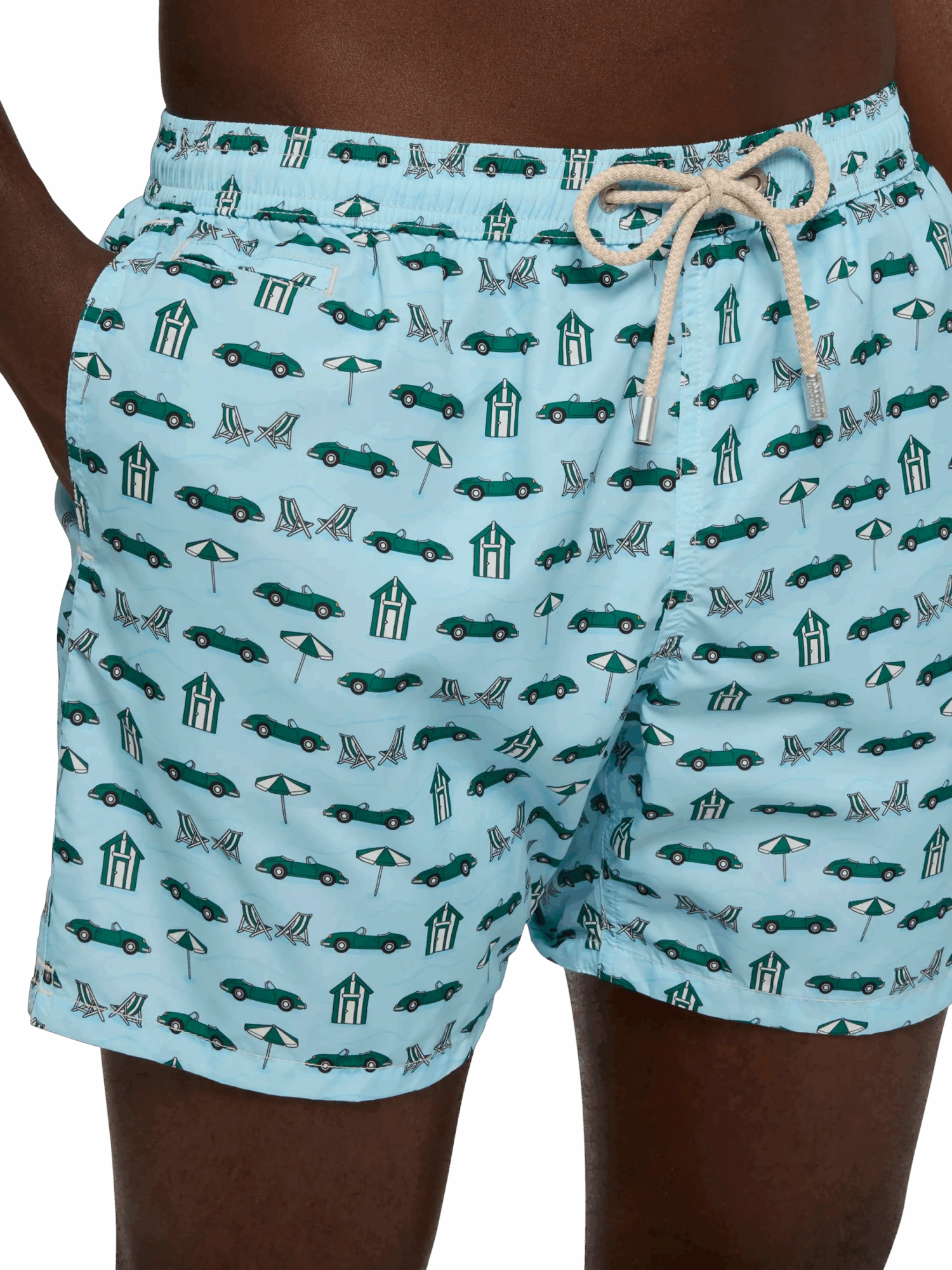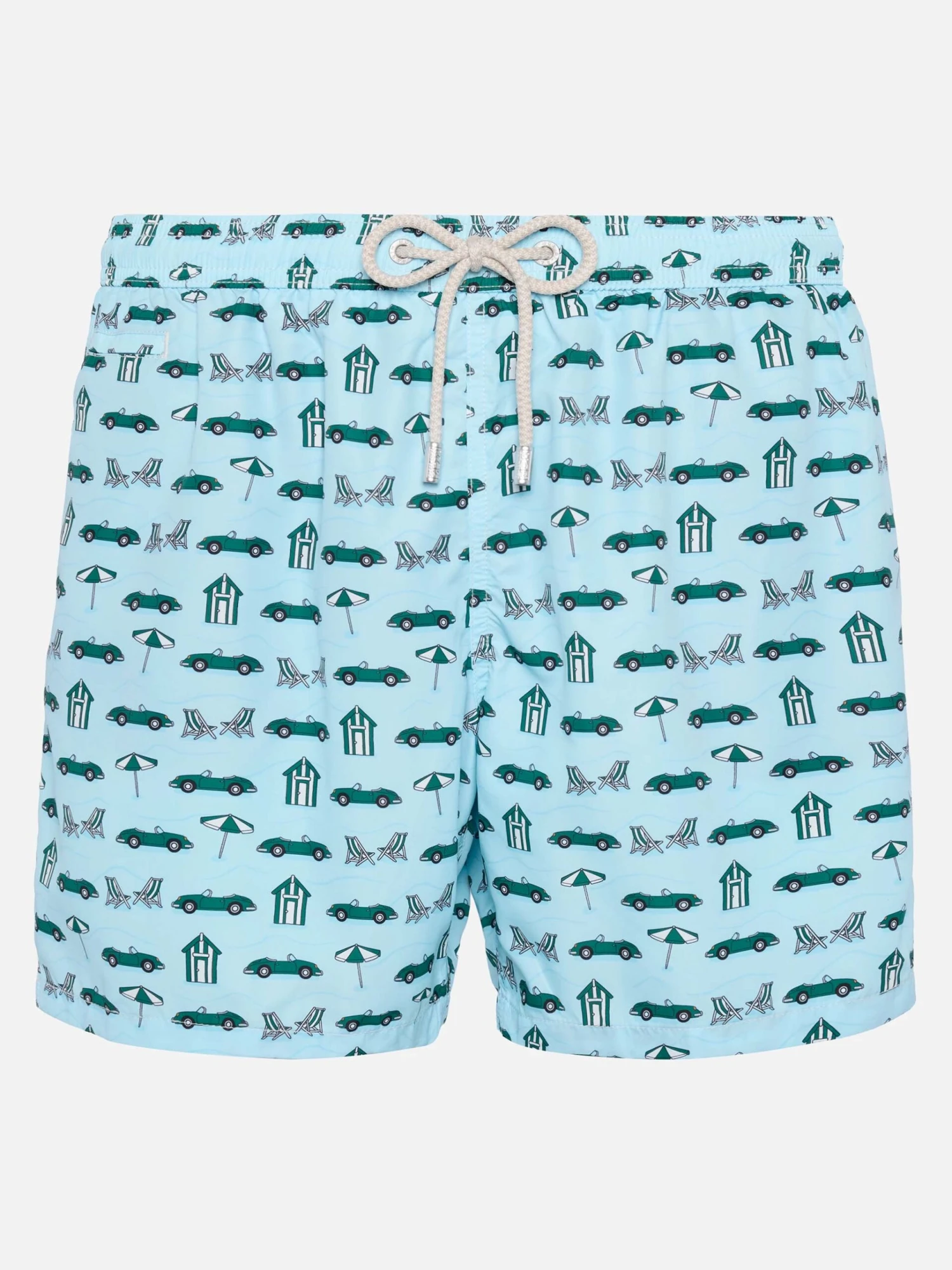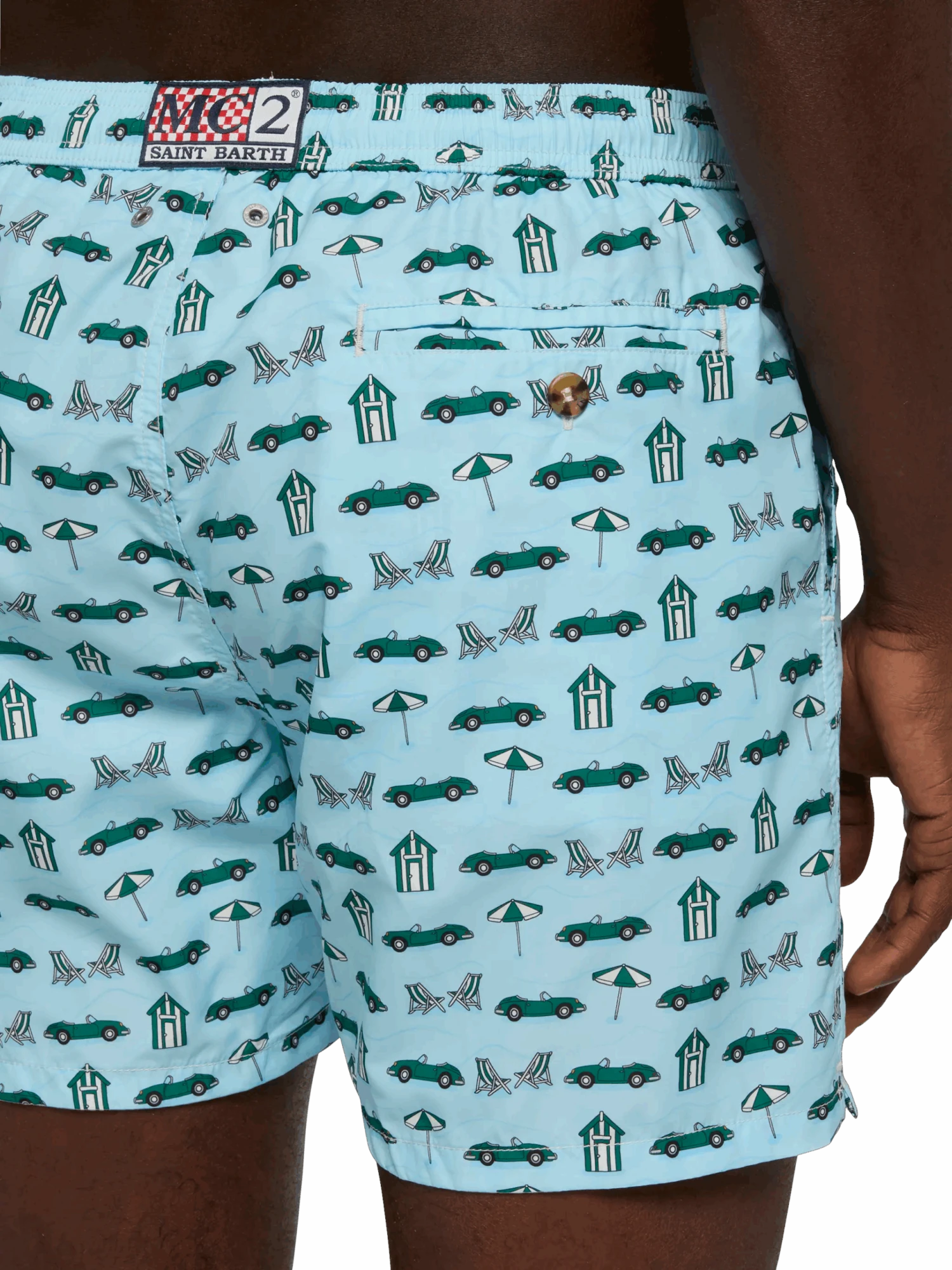 MC2 Saint Barth Lightweight Fabric Swim Shorts Lighting With Cars And Beach Cabana Print