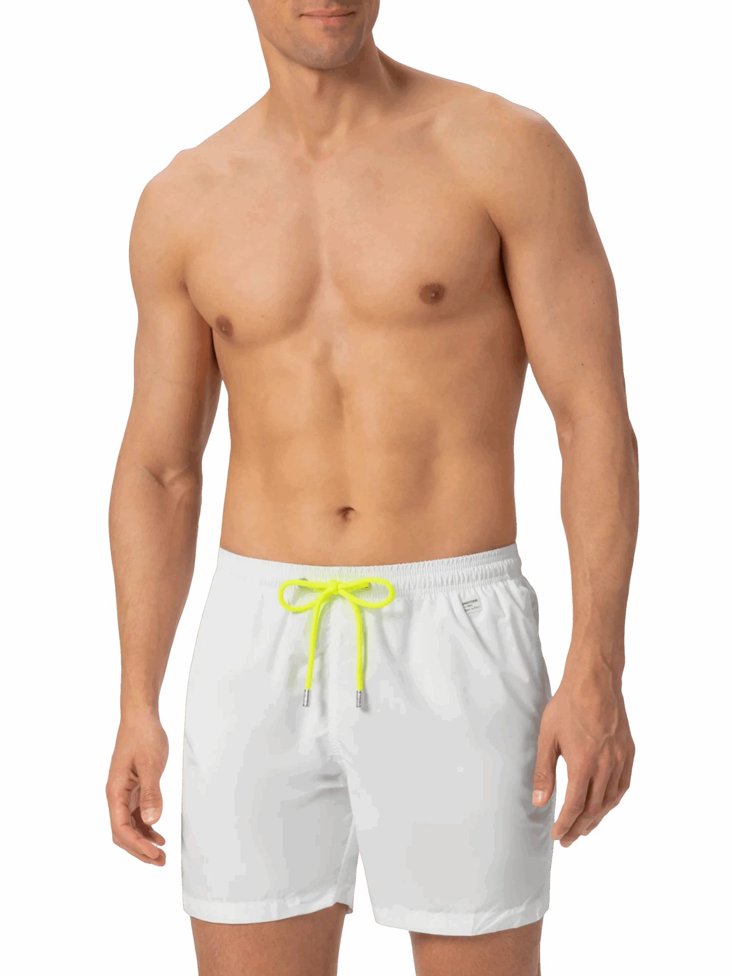 Introducing our exclusive collaboration with Pantone, the global authority on color. These lightweight, quick-drying swim shorts feature a solid color, contrasting drawstring waist, and a Pantone-branded metal plate. Designed for comfort, they include side pockets, drainage eyelets, and a rear pocket with a magnetic closure. Plus, they can be folded into the rear pocket. Dive into style with our Pantone swim shorts.