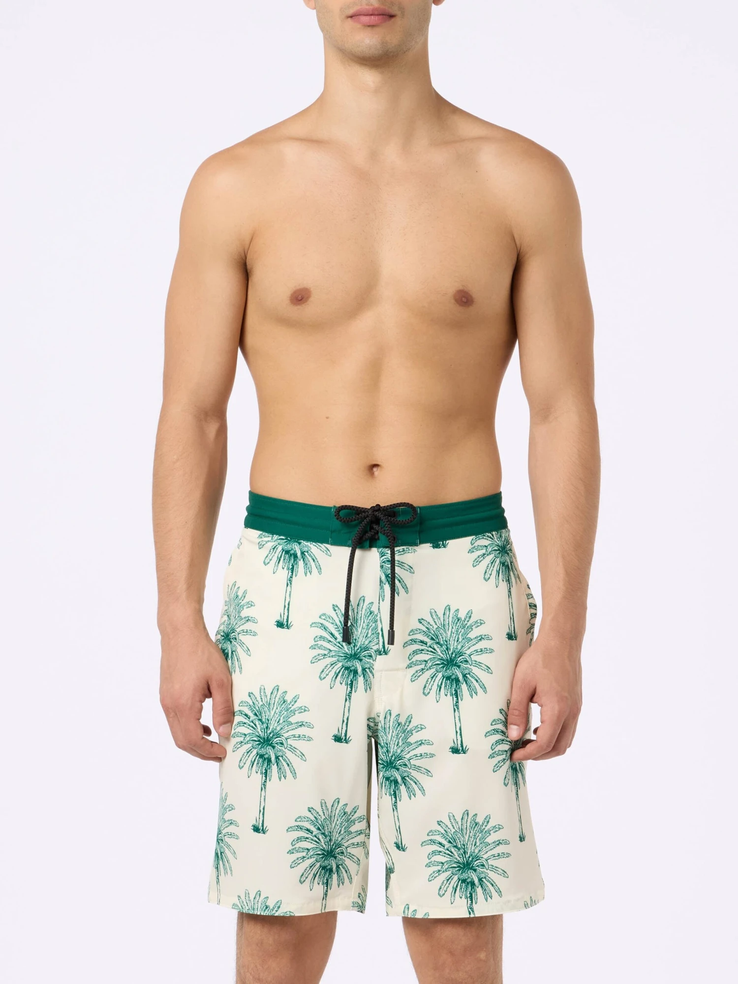 MC2 Saint Barth Long Stretch Comfort Surf Swim Shorts With Palm Print