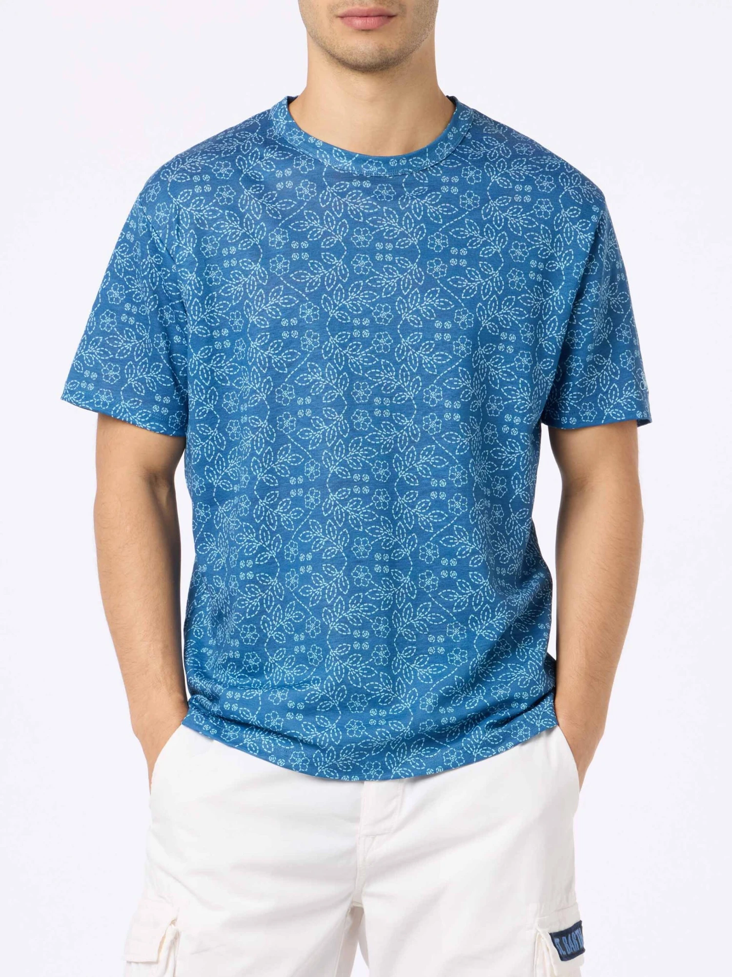 MC2 Saint Barth Man Blue Linen Jersey T-shirt Ecstasea With Sashiko Print